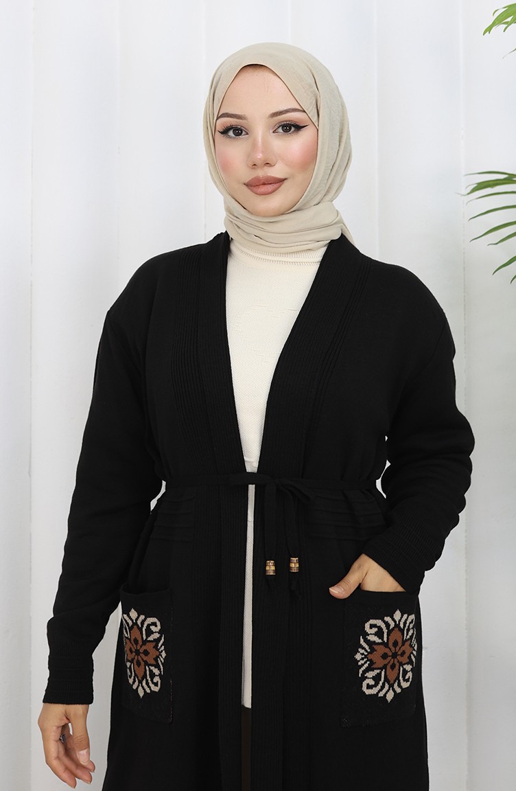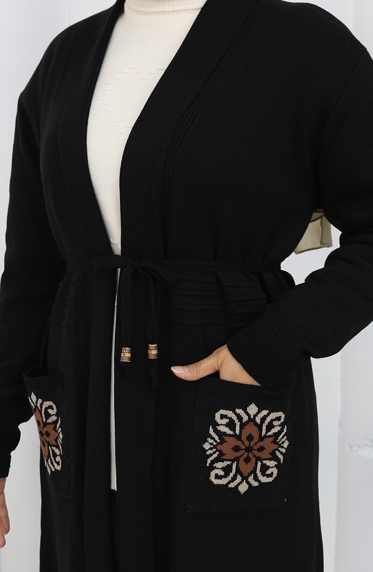 Cardigan Long Brodé En Maille 0022-04 Noir 0022-04
