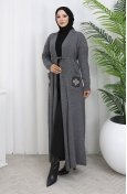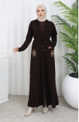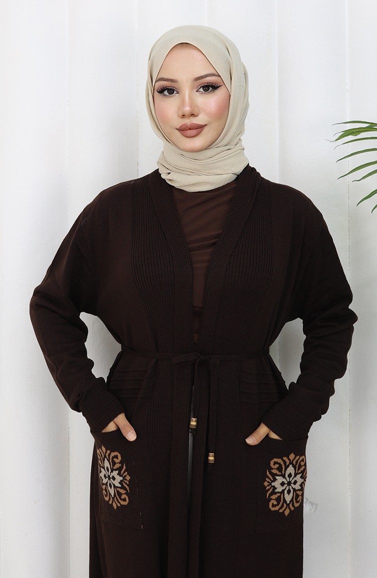 Cardigan Long Brodé En Maille 0022-05 Marron 0022-05