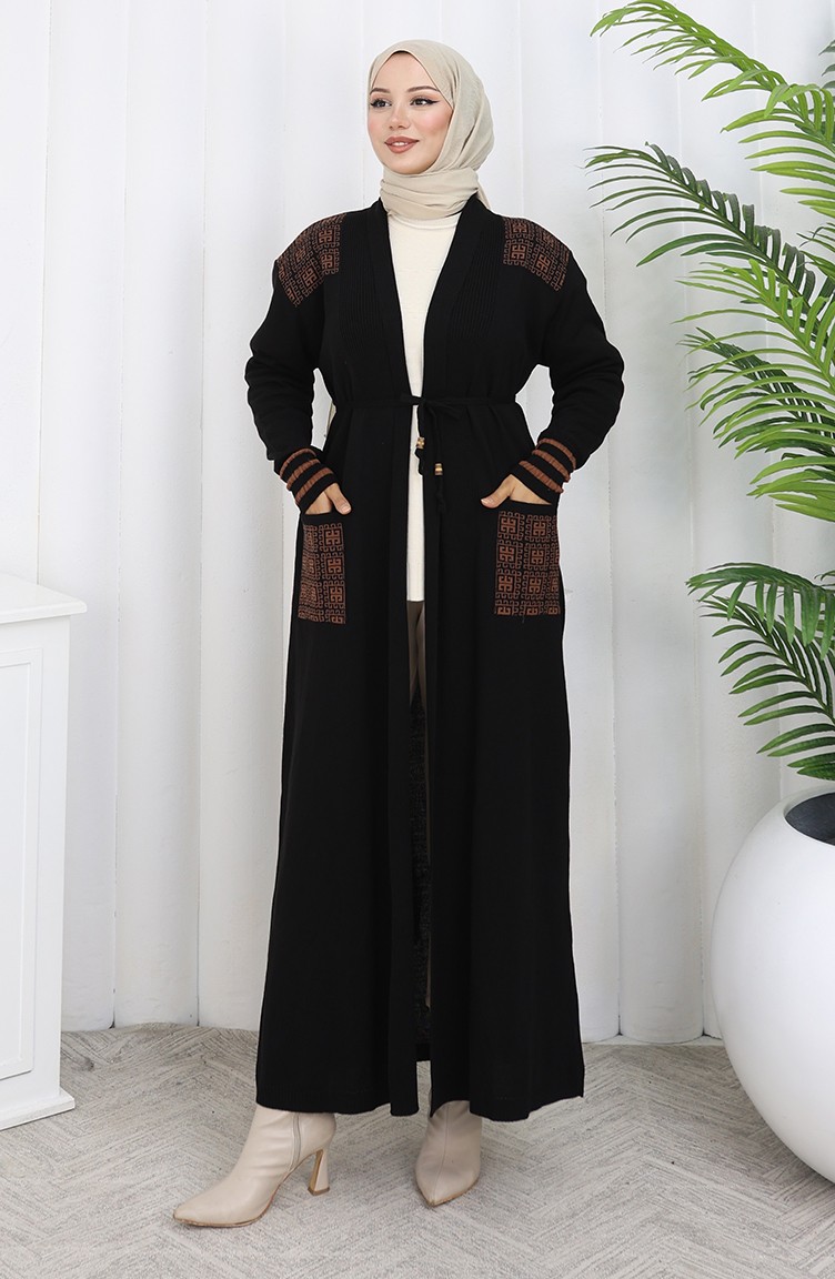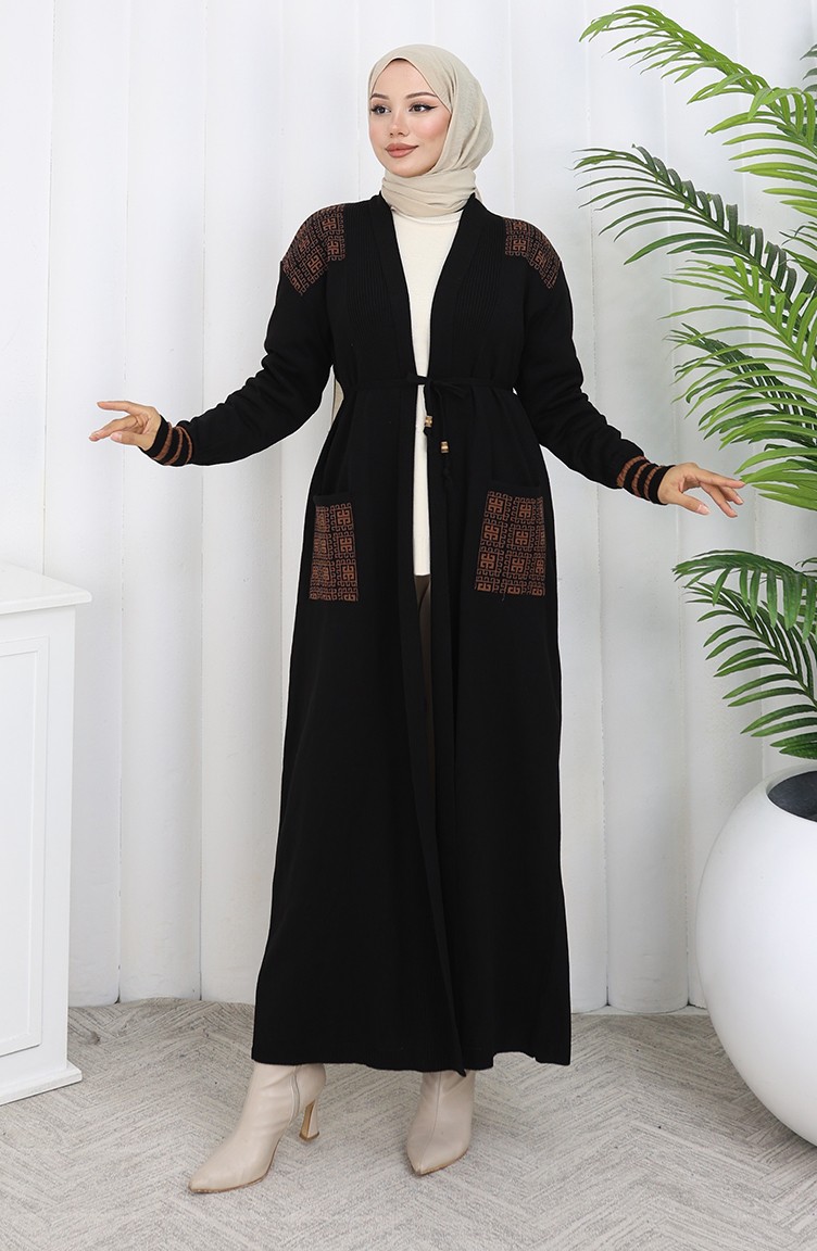Cardigan Long Brodé En Maille 0027-06 Noir 0027-06