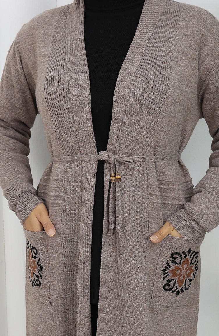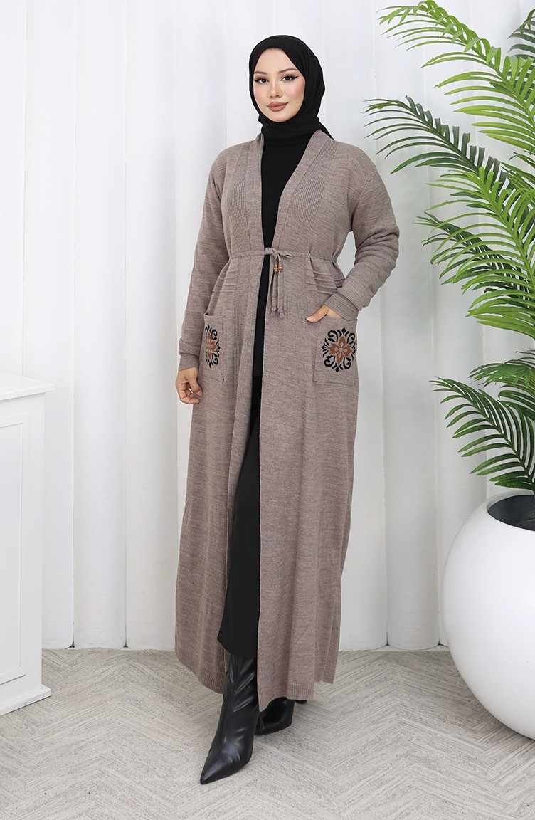 Cardigan Long Brodé En Tricot 0022-01 Vison 0022-01