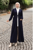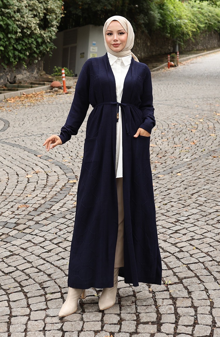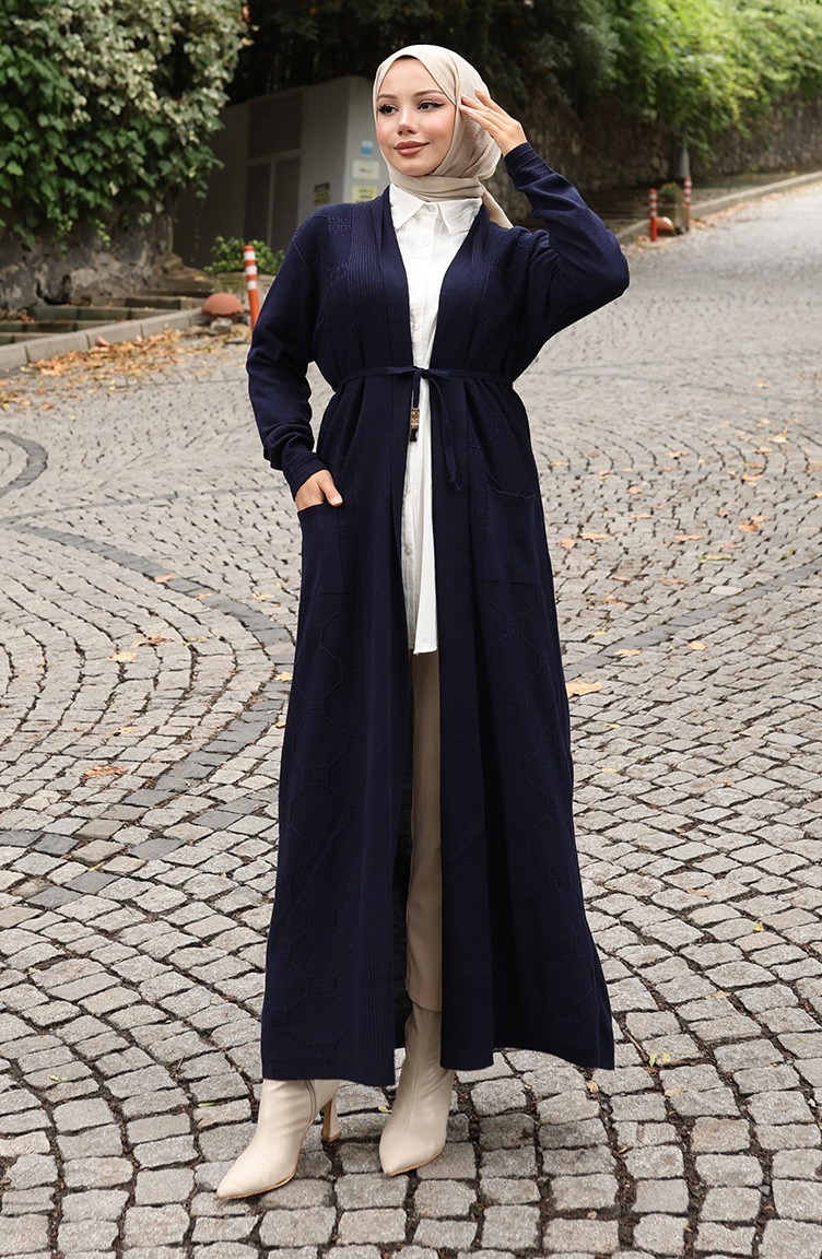 Cardigan Long Côtelé En Maille 0030-03 Bleu Marine 0030-03
