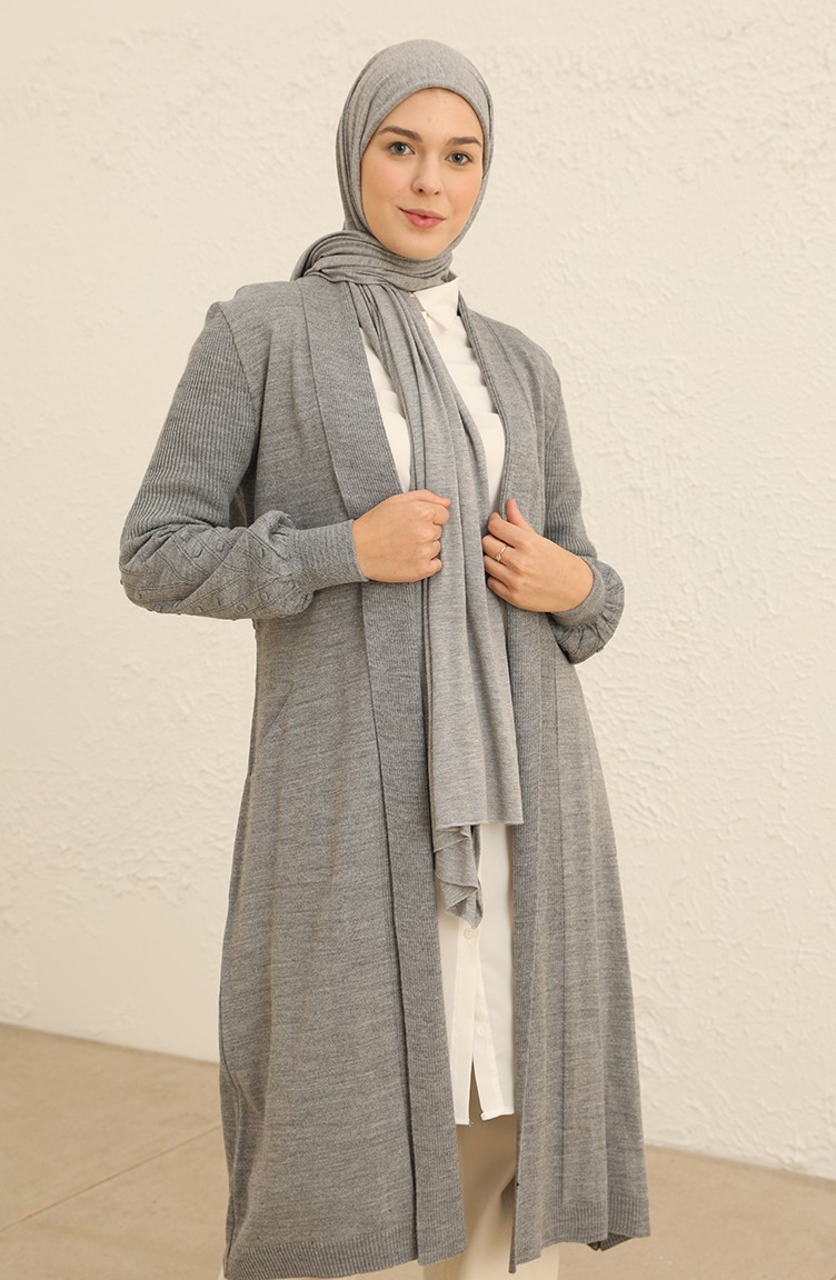 La couleur Gris. Tricot. Simple. A Ceinture. Manches longues. Col renverse. Adapté pour les 4 saisons. Femme. 36-42 tailles appropriée.