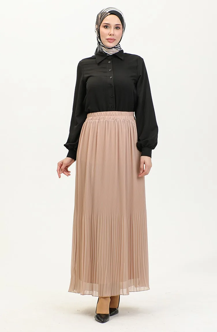 Jupe Plissée 3009-01 Beige 3009-01