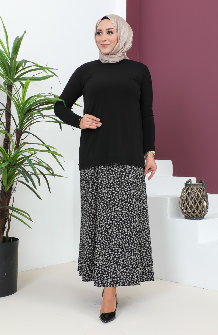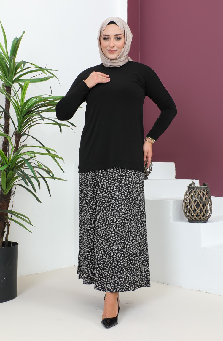 Jupe En Viscose à Pièces Grandes Tailles 4360K-01 Noire 4360K-01