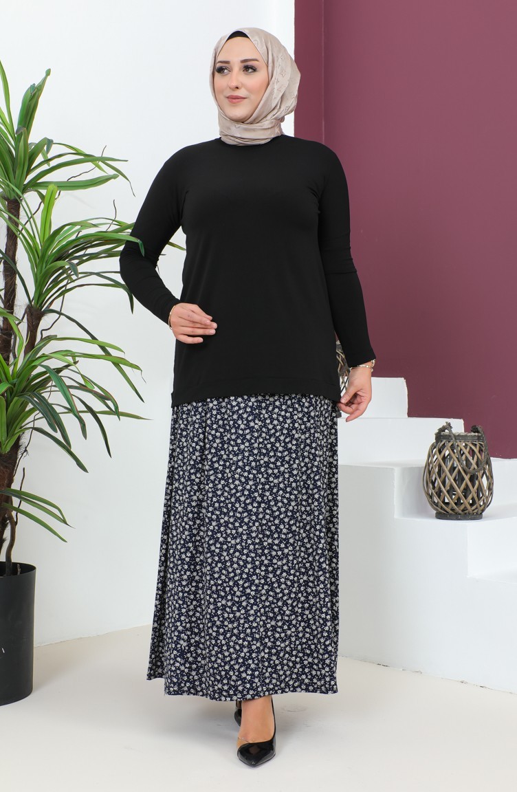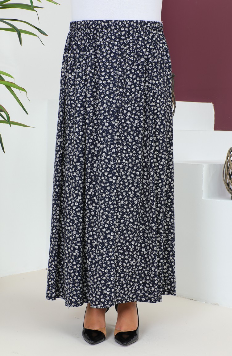 Jupe En Viscose à Pièces Grandes Tailles 4360K-02 Bleu Marine 4360K-02