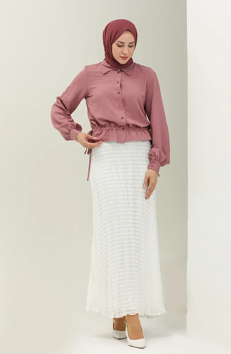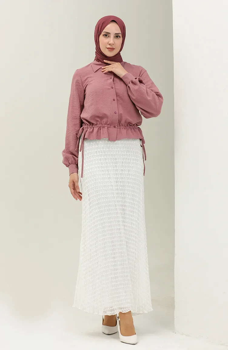 Jupe Plissée en Dentelle 0134-02 Blanc 0134-02