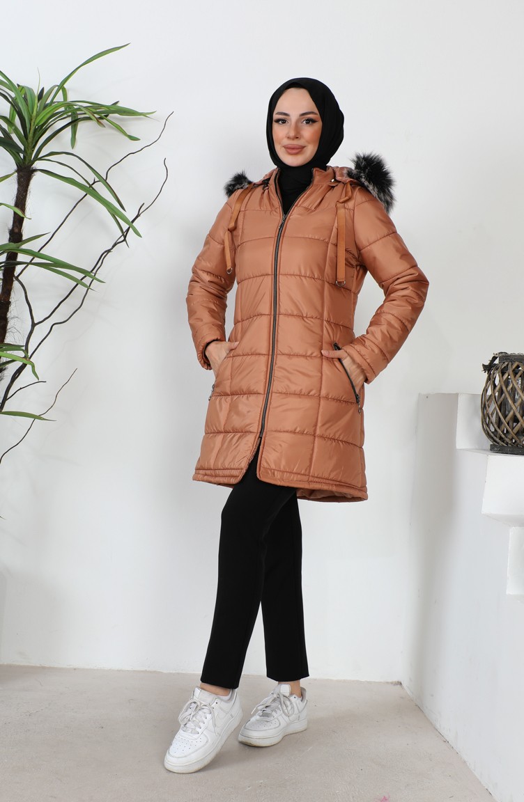 Manteau Court Matelassé à Capuche 5201-05 Tan 5201-05