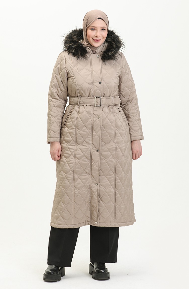 Manteau Matelassé à Ceinture en Fourrure 504223-05 Vison 504223-05