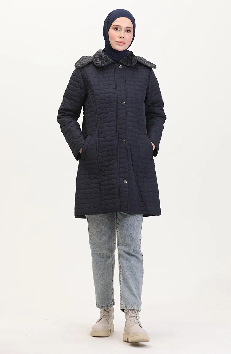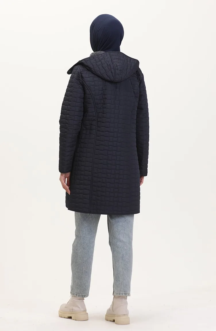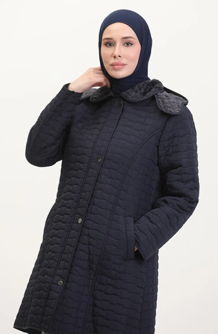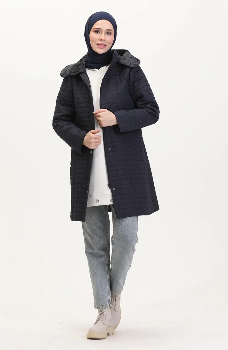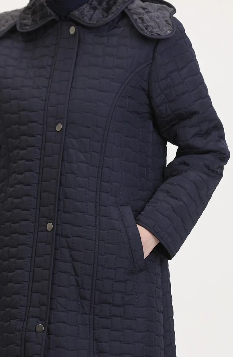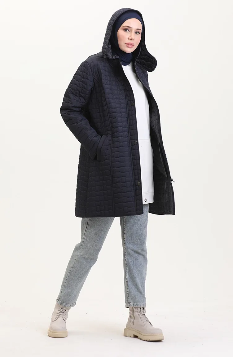 Manteau Matelassé à Capuche Grande Taille 6132-03 Bleu Marine 6132-03