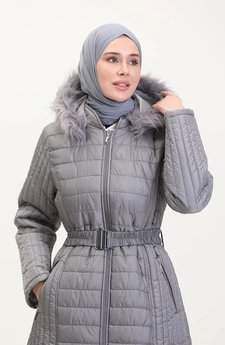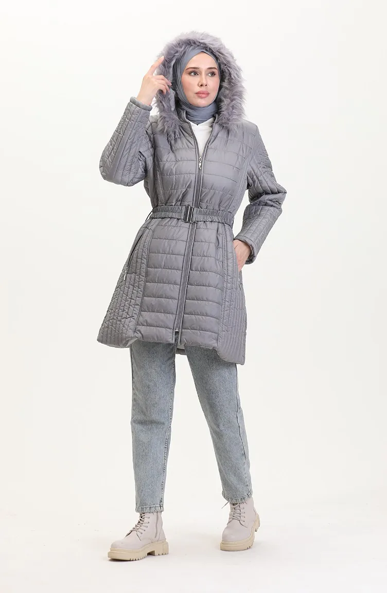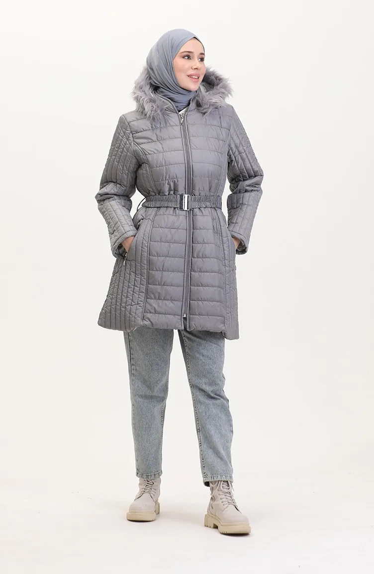 Manteau Matelassé A Ceinture 0811-06 Gris 0811-06