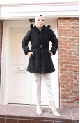 Veste à Capuche Grande Taille Avec Ceinture 6345-01 Noire 6345-01