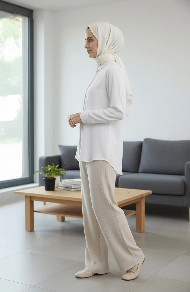 Pantalon En Mousseline 0020-01 Crème 0020-01