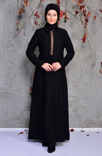 Couleur Noire. Tissu polyester. Simple. Sans doublure. Manches longues. Col officier. Hivernal. Option de grande taille disponible.