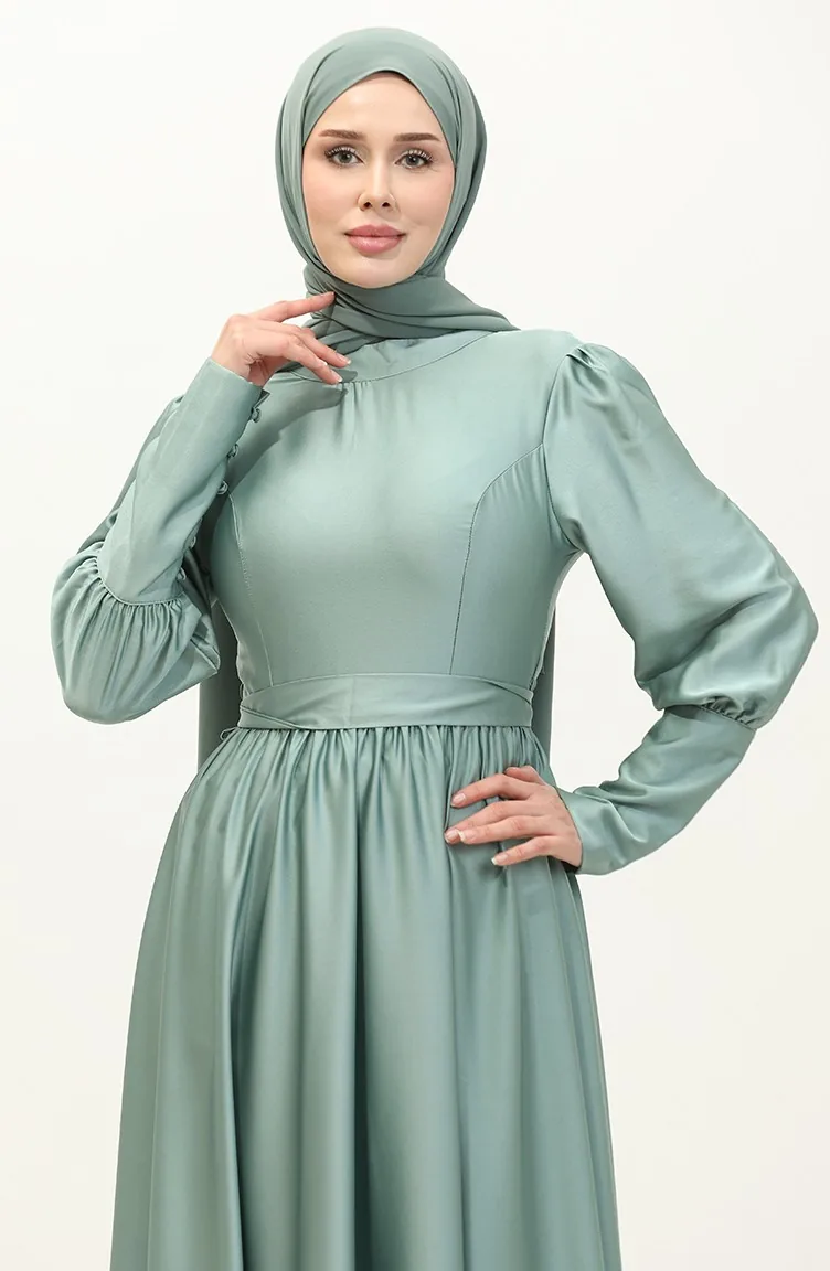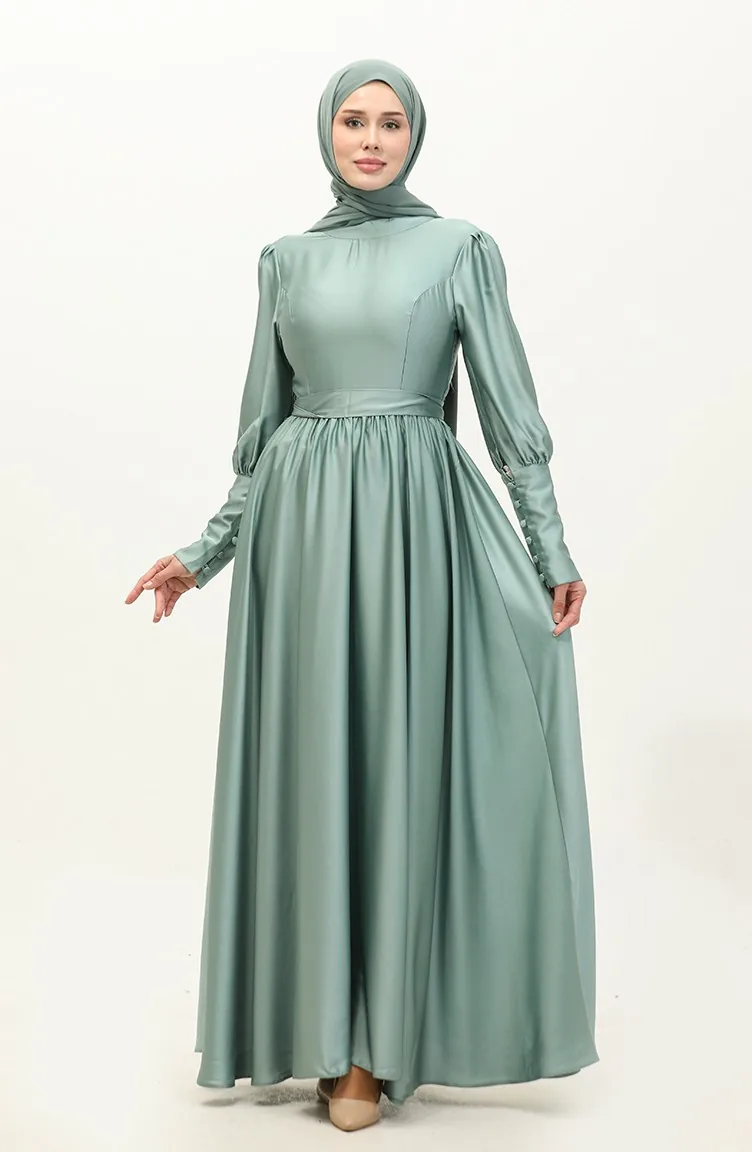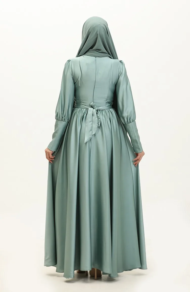 Robe De Soirée Coupe Coupée En Satin 6080-13 Vert 6080-13