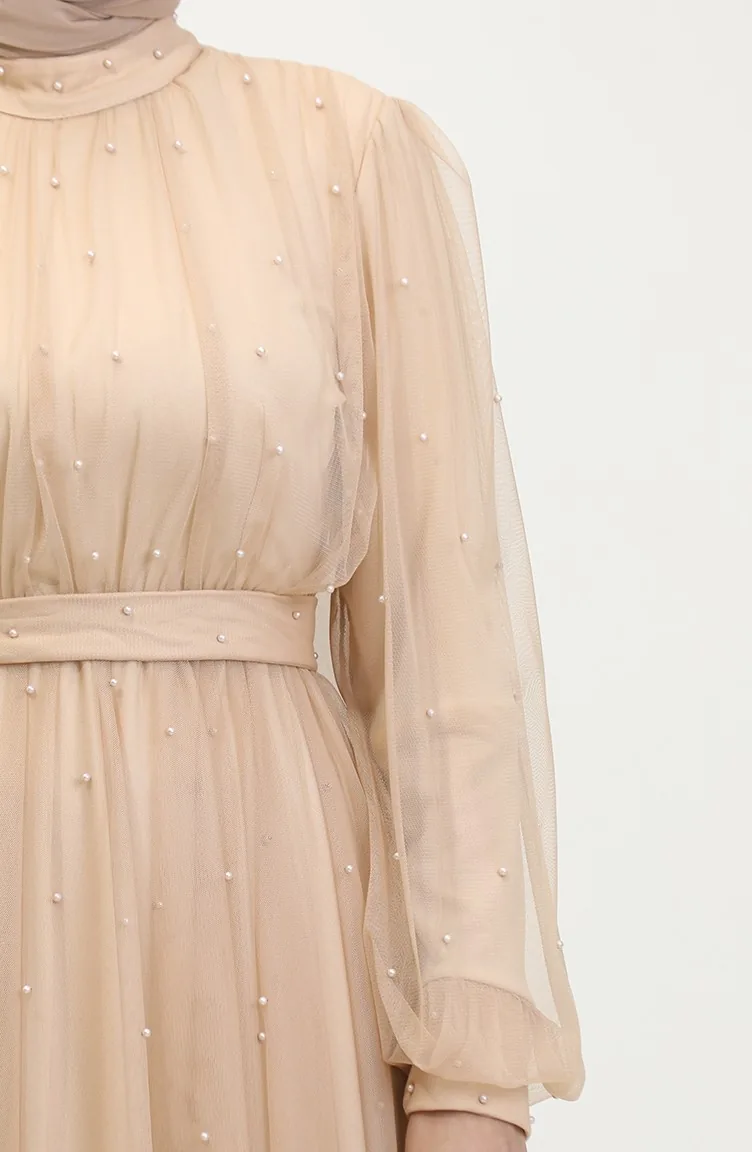 Robe De Soirée Tulle Perlé 6233-10 Beige 6233-10