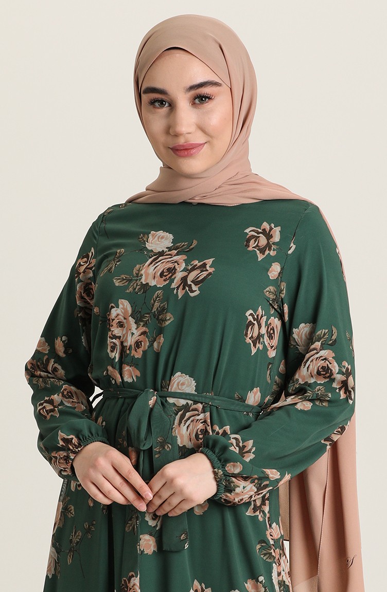 Couleur Vert emeraude. Tissu en mousseline. Tissu à motifs. Avec doublure. Manches élastiques. Col Zéro. Adapté pour les 4 saisons. Option de grande taille disponible.
