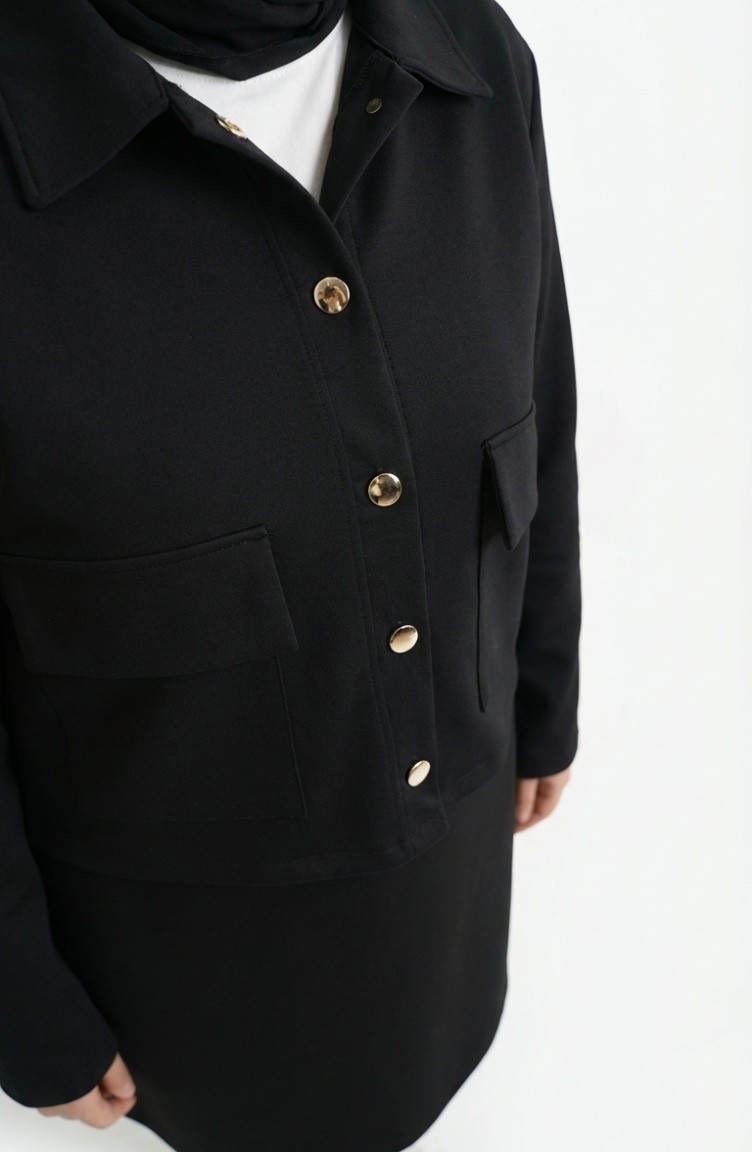 Couleur Noire. crêpe scuba crêpe scuba. Simple. Avec boutons. Col Chemise. Adapté pour les 4 saisons. Option de grande taille disponible.