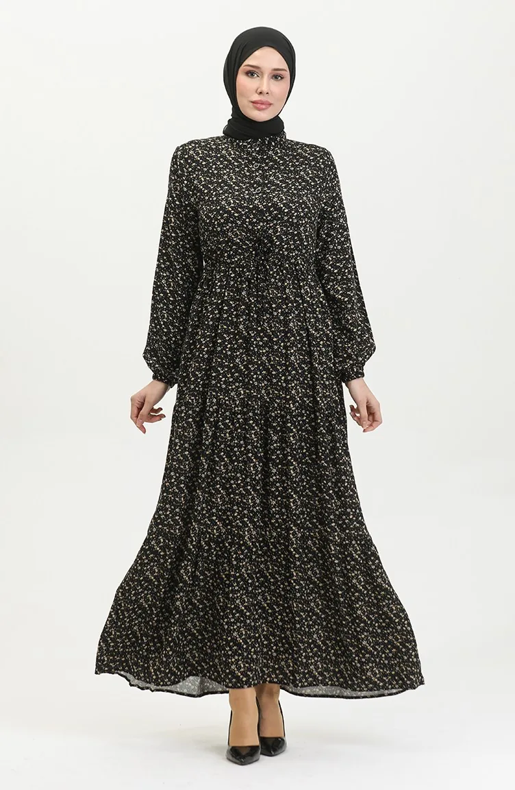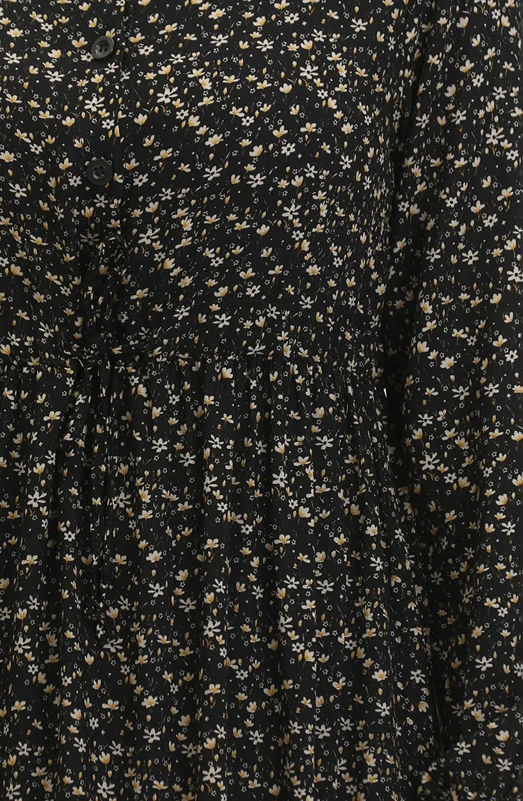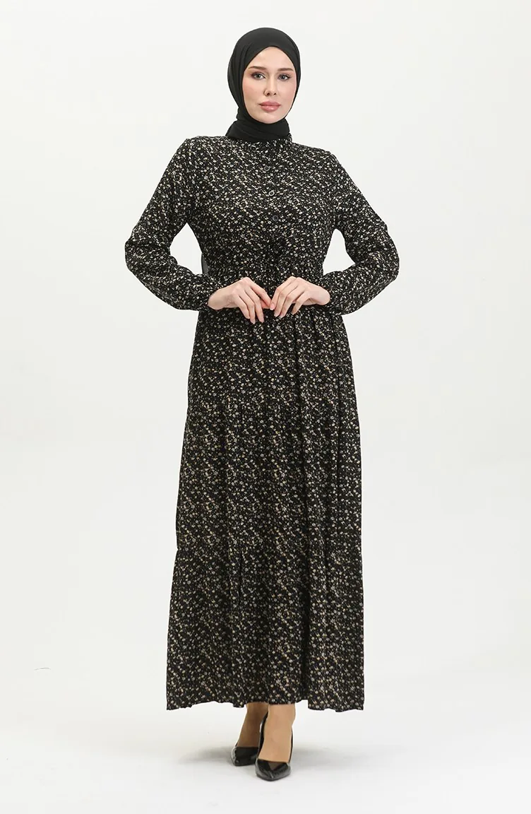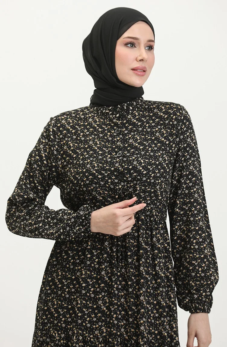 Petite Robe Fleurie Viscose 0391-05 Noir 0391-05