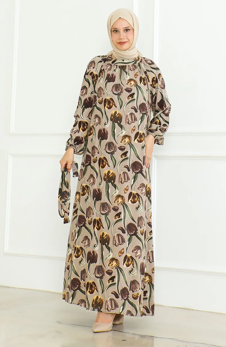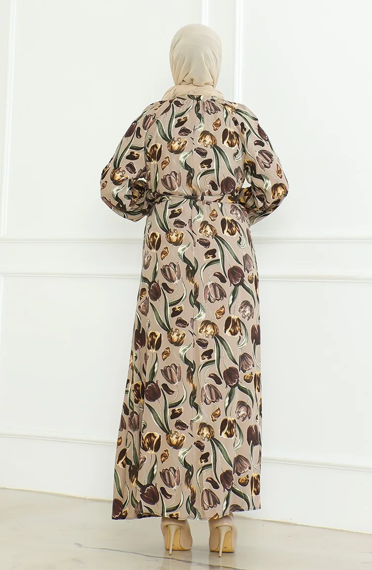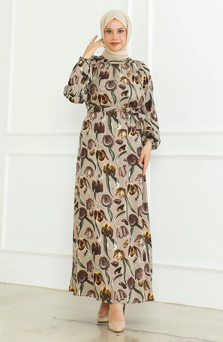 Robe à Motifs Et Ceinture 0467-03 Vison 0467-03