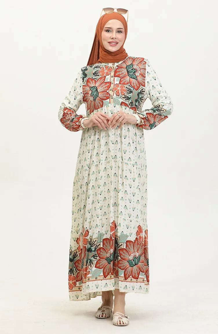 Robe A Motifs Fleurs 4093-04 Carreau 4093-04