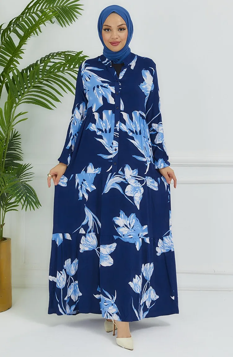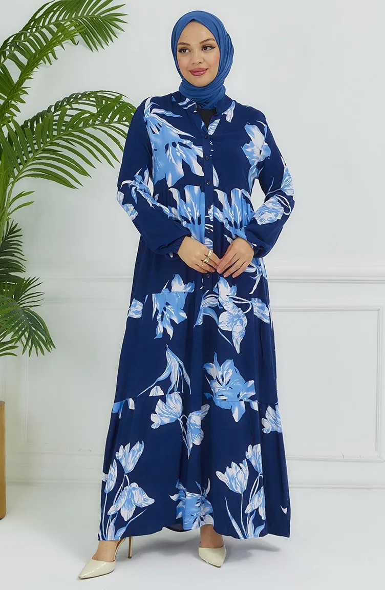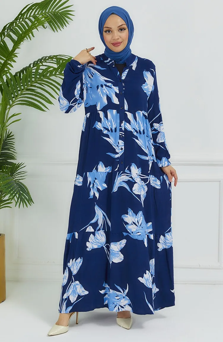 Robe à Motifs Fleurs 4094-02 Bleu Marine 4094-02
