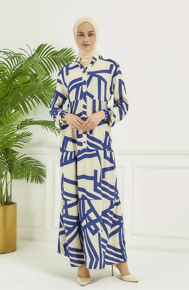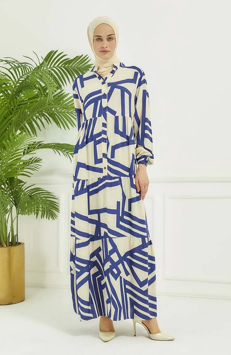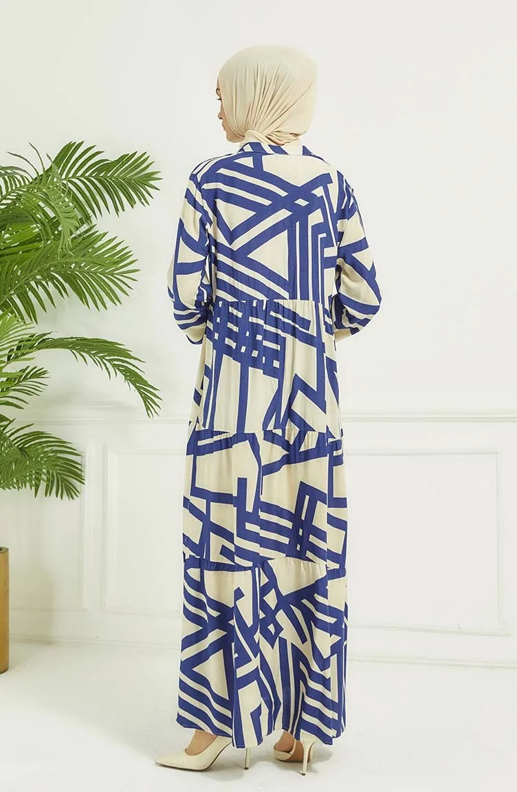 Robe A Motifs Géométriques 4106-01 Bleu Marine 4106-01