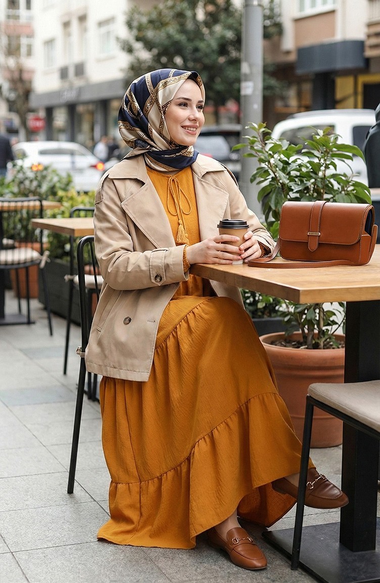 Robe à Volants Et Col à Volants 4107-14 Moutarde 4107-14