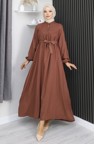 Robe Belmando En Tissu Marron à Demi-boutons Et Ceinture Référence 2166-06 2166-06