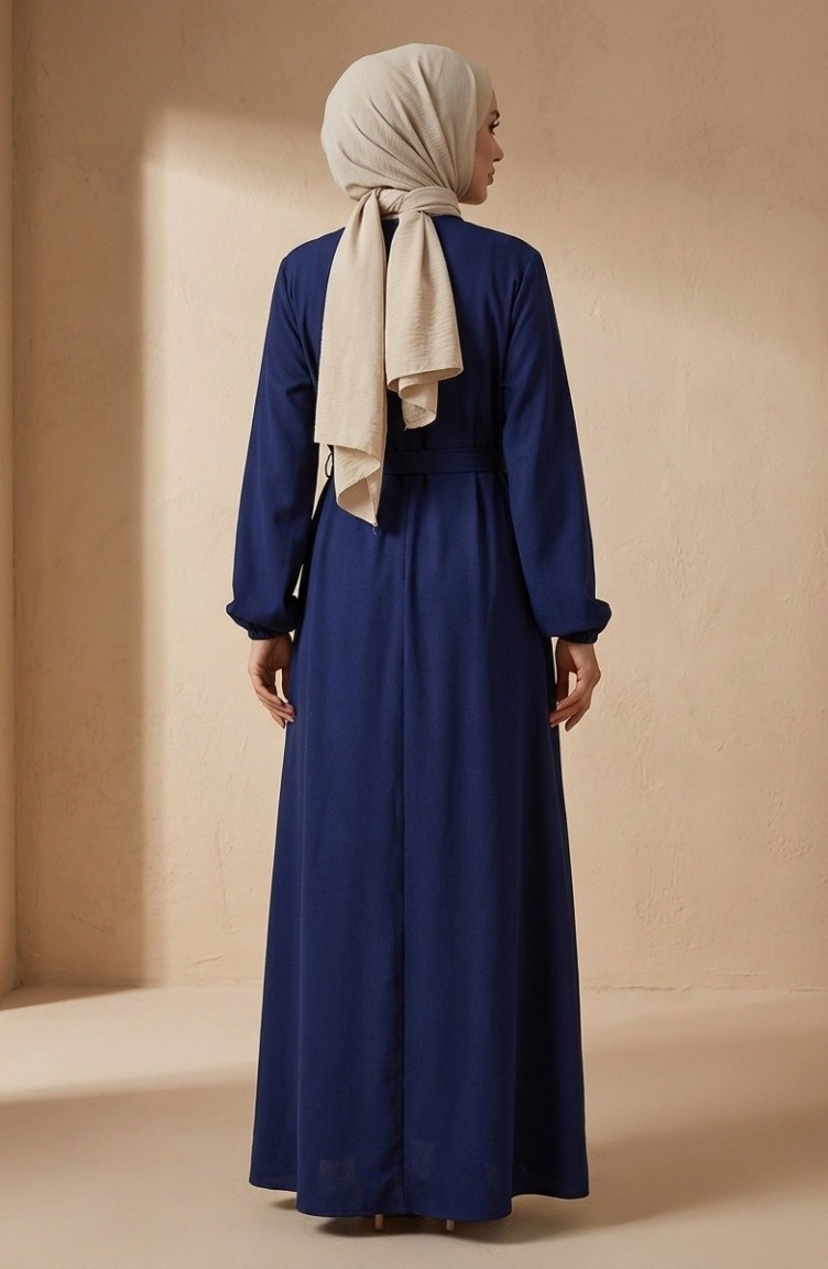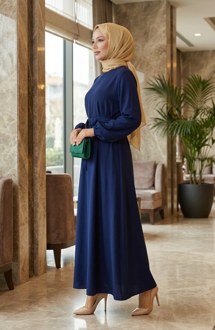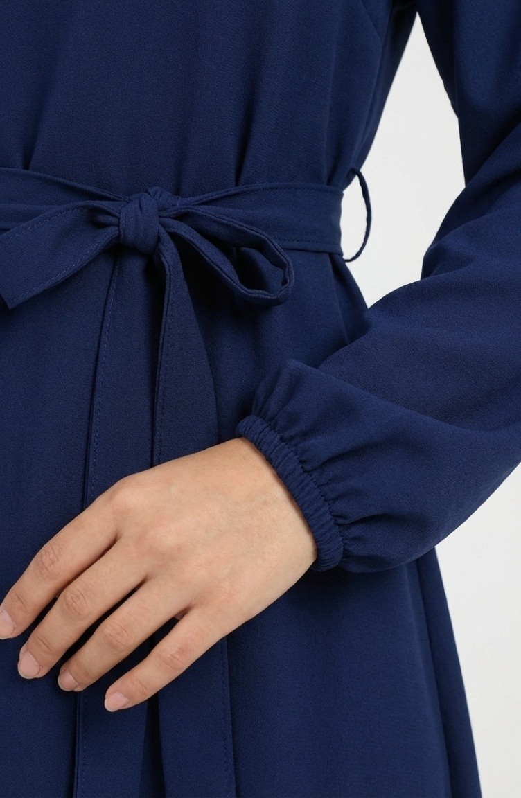 Robe Ceinturée à Manches élastiquées 2151-01 Bleu Marine 2151-01