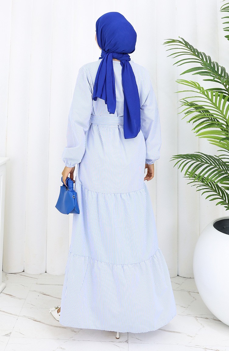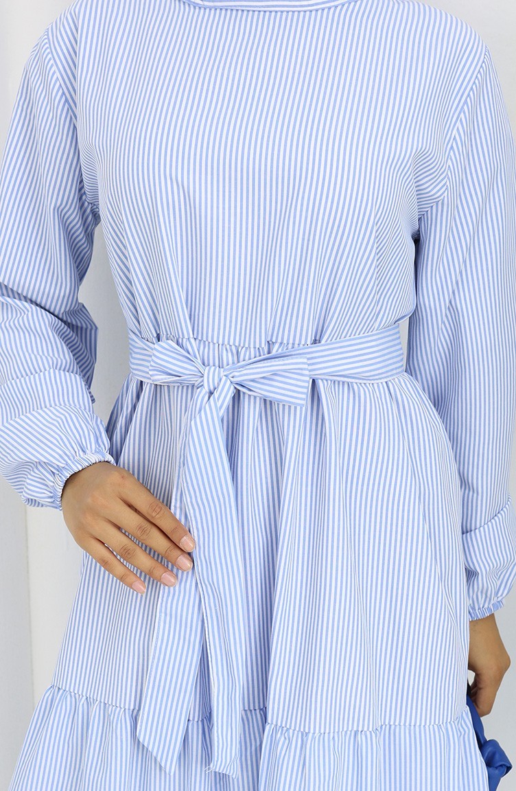 Robe Ceinturée à Rayures Terikoton 0101-03 Bleu 0101-03
