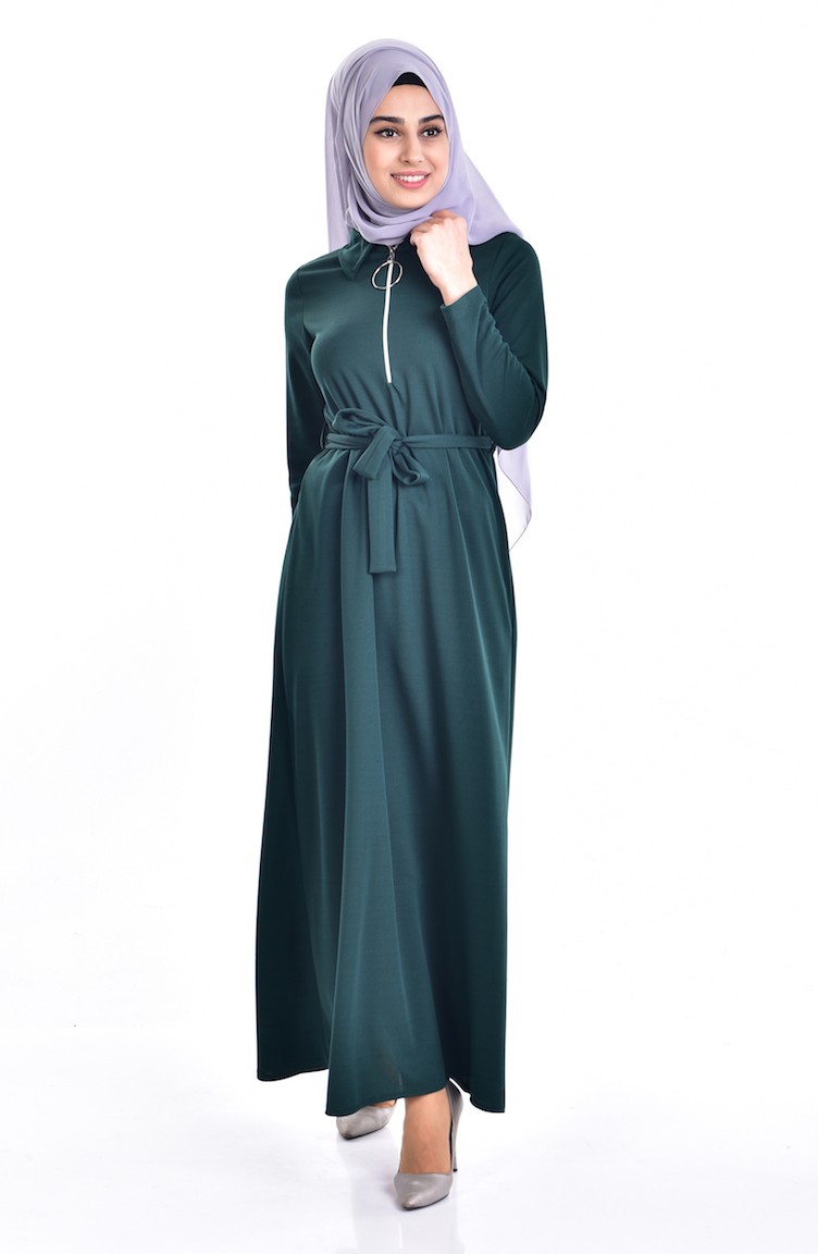 Robe Col Chemise a Ceinture 5083-04 Vert emeraude 5083-04