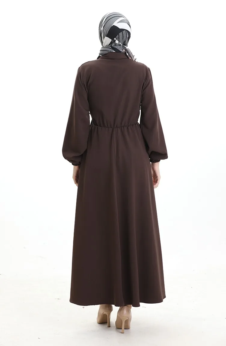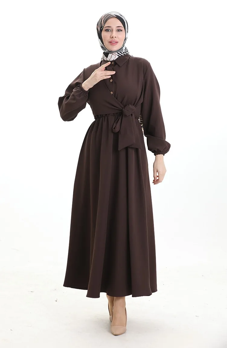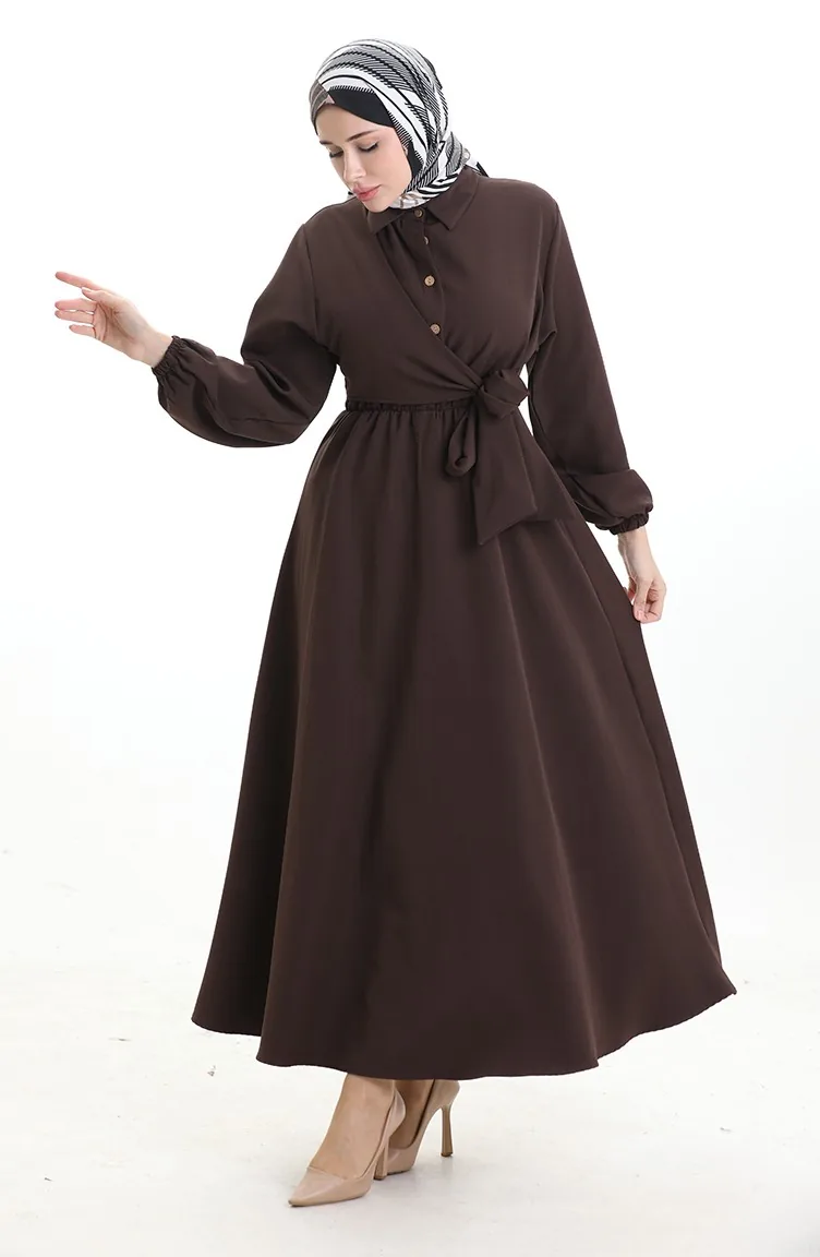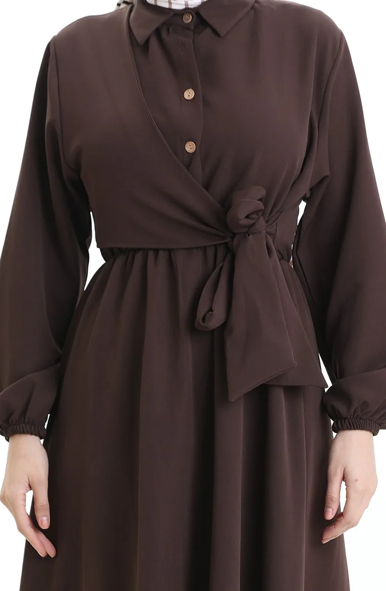 Robe Croisée Boutonnée Avec Ceinture 0198-05 Marron 0198-05