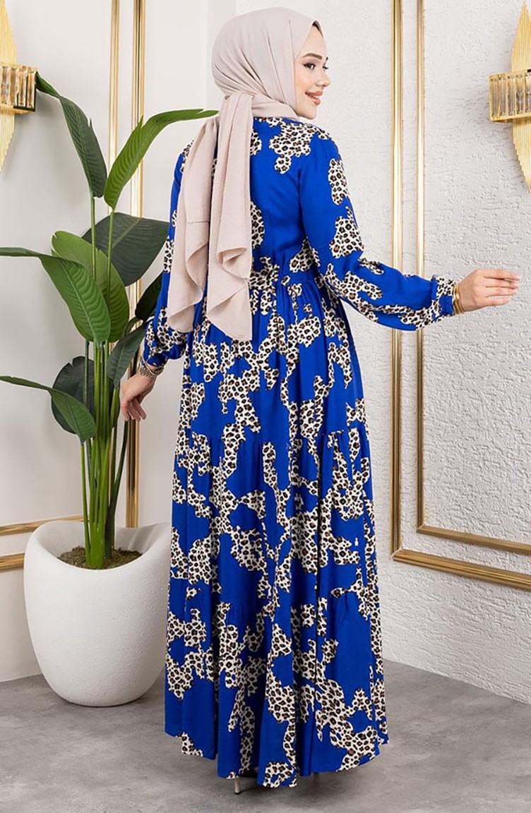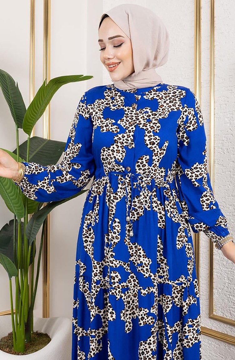 Robe En Viscose à Imprimé Léopard 7135-02 Bleu 7135-02