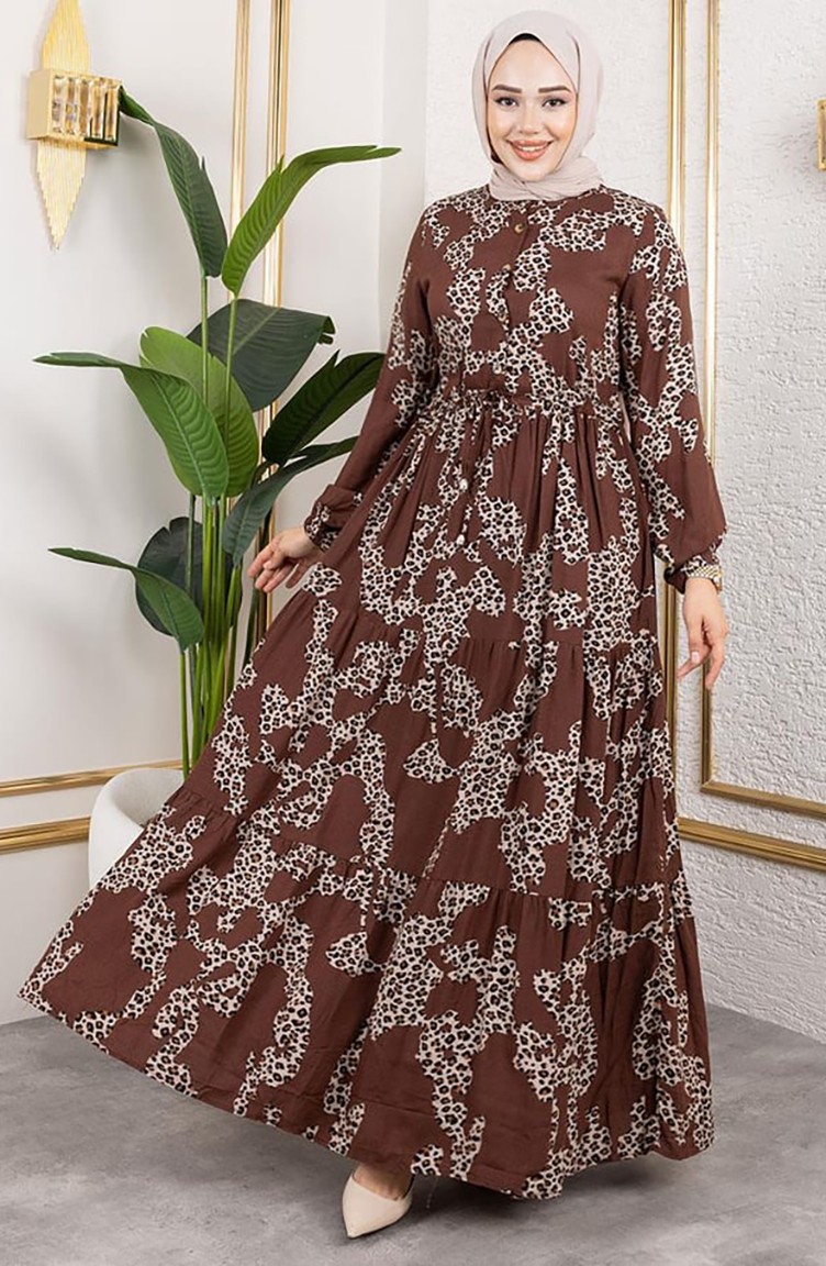 Robe En Viscose à Motif Léopard 7135-05 Marron 7135-05