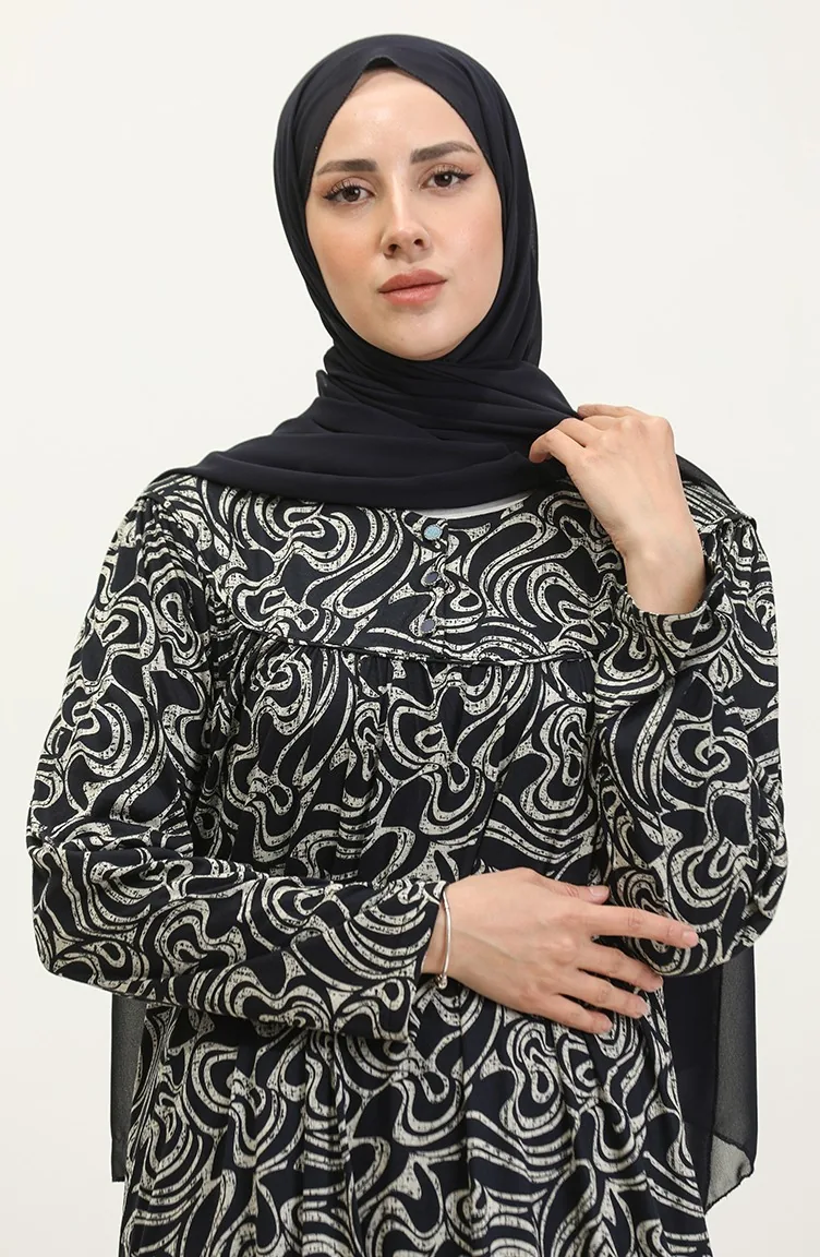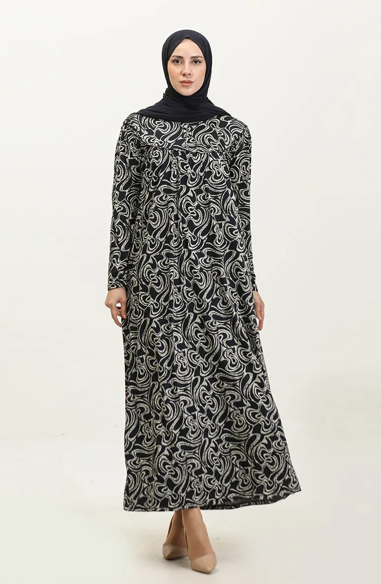 Robe En Viscose à Motifs Grande Taille 4470C-02 Bleu Marine 4470C-02