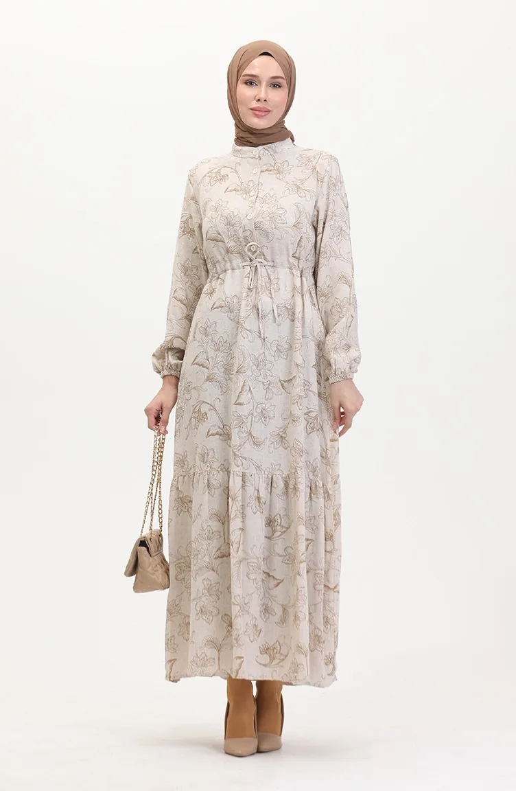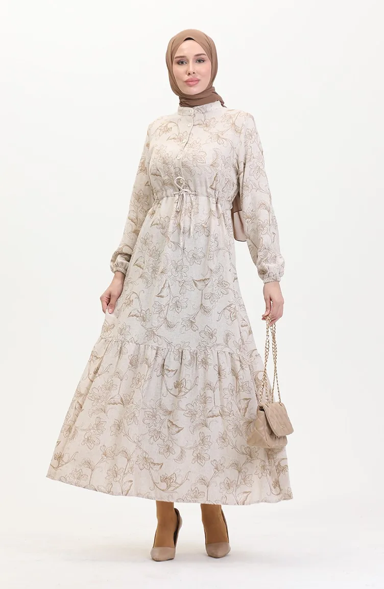 Robe Lin A Lacets Et Boutons 0520-05 Beige Vison 0520-05