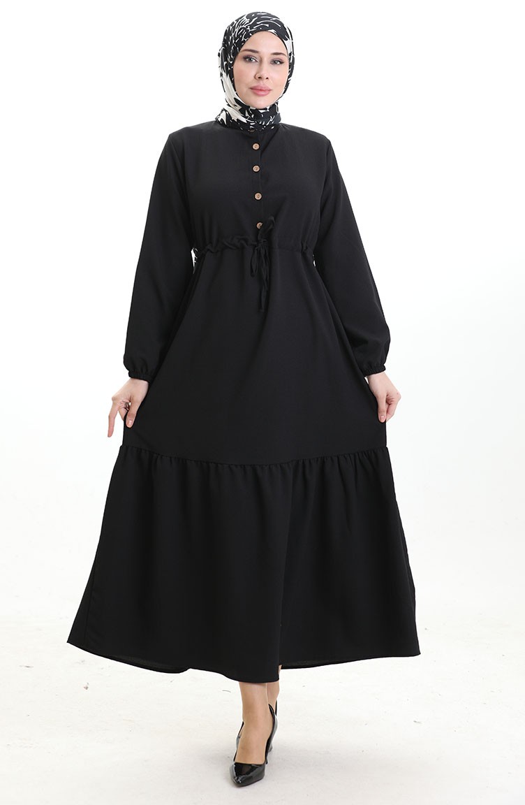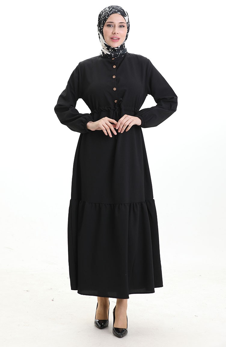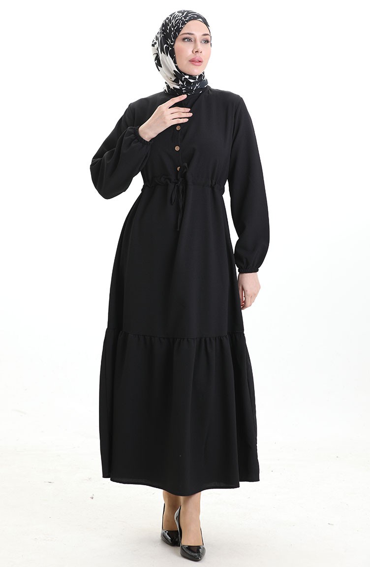 Robe Mi-boutonnée Avec Lien à La Taille 0182-09 Noir 0182-09
