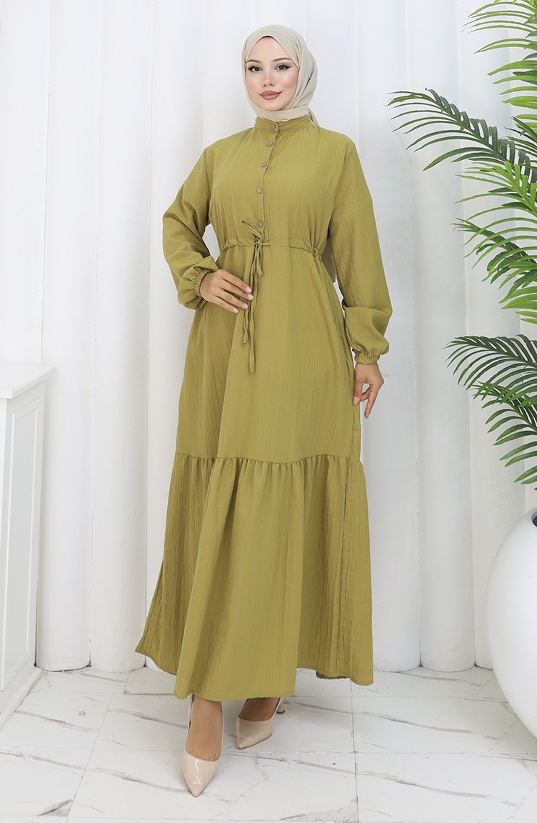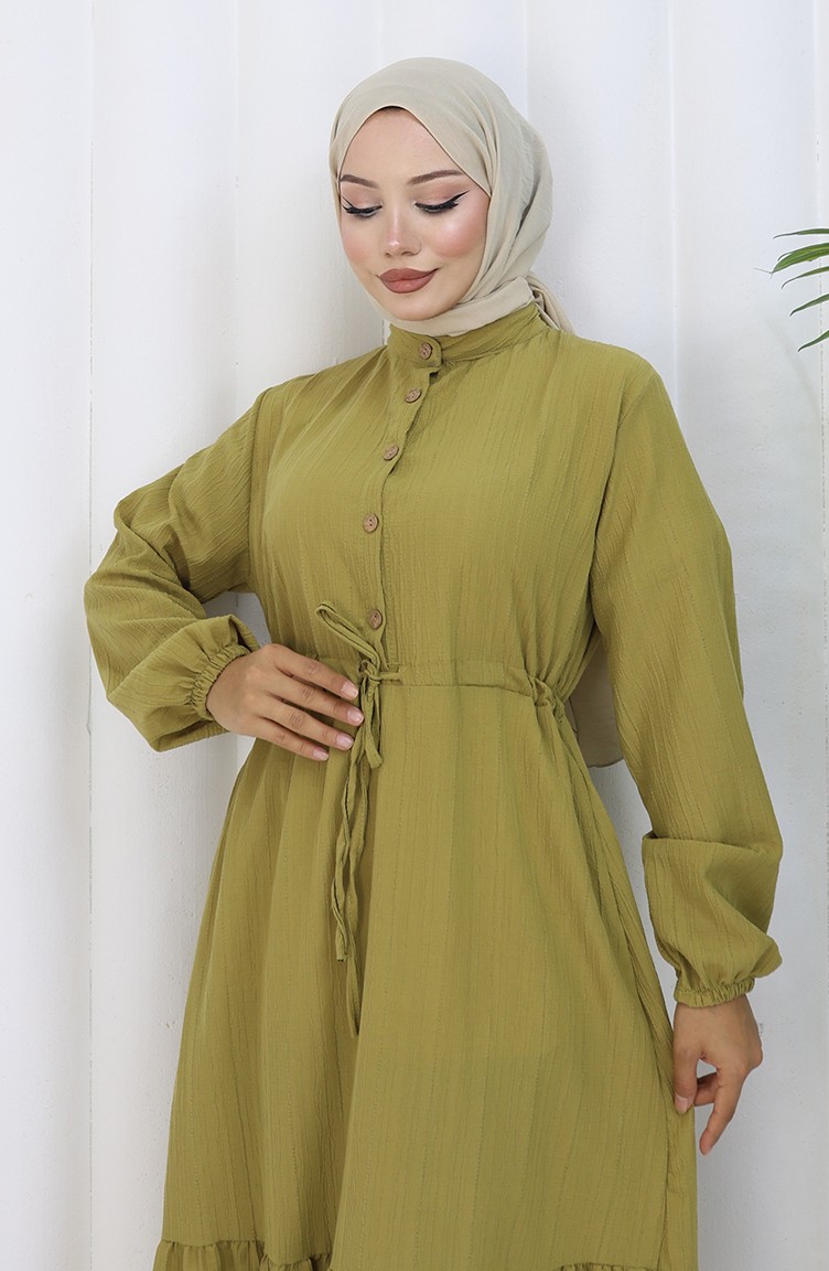 Robe Mi-boutonnée Avec Lien à La Taille 0183-04 Vert Pétrole 0183-04