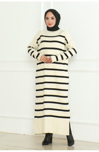 Robe Tricot Rayée Col Roulé 253-03 Ecru 253-03
