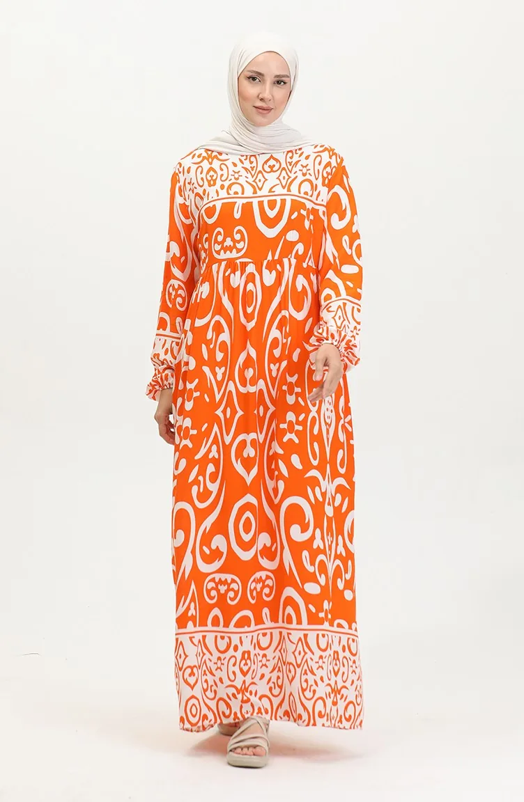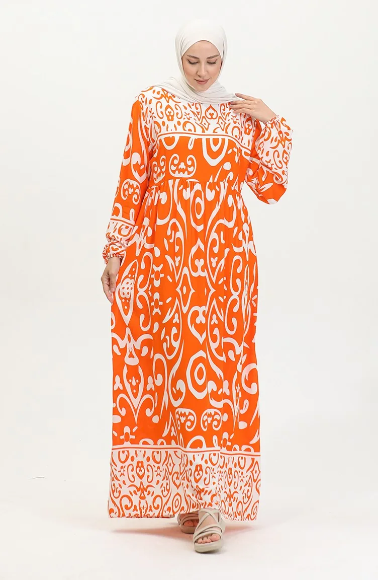 Robe Viscose à Motifs 81862-01 Orange 81862-01