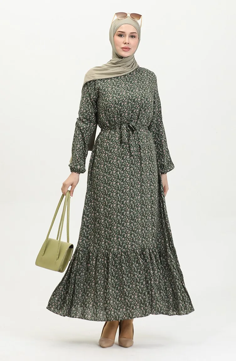 Robe Viscose à Motifs 81867-01 Khaki 81867-01