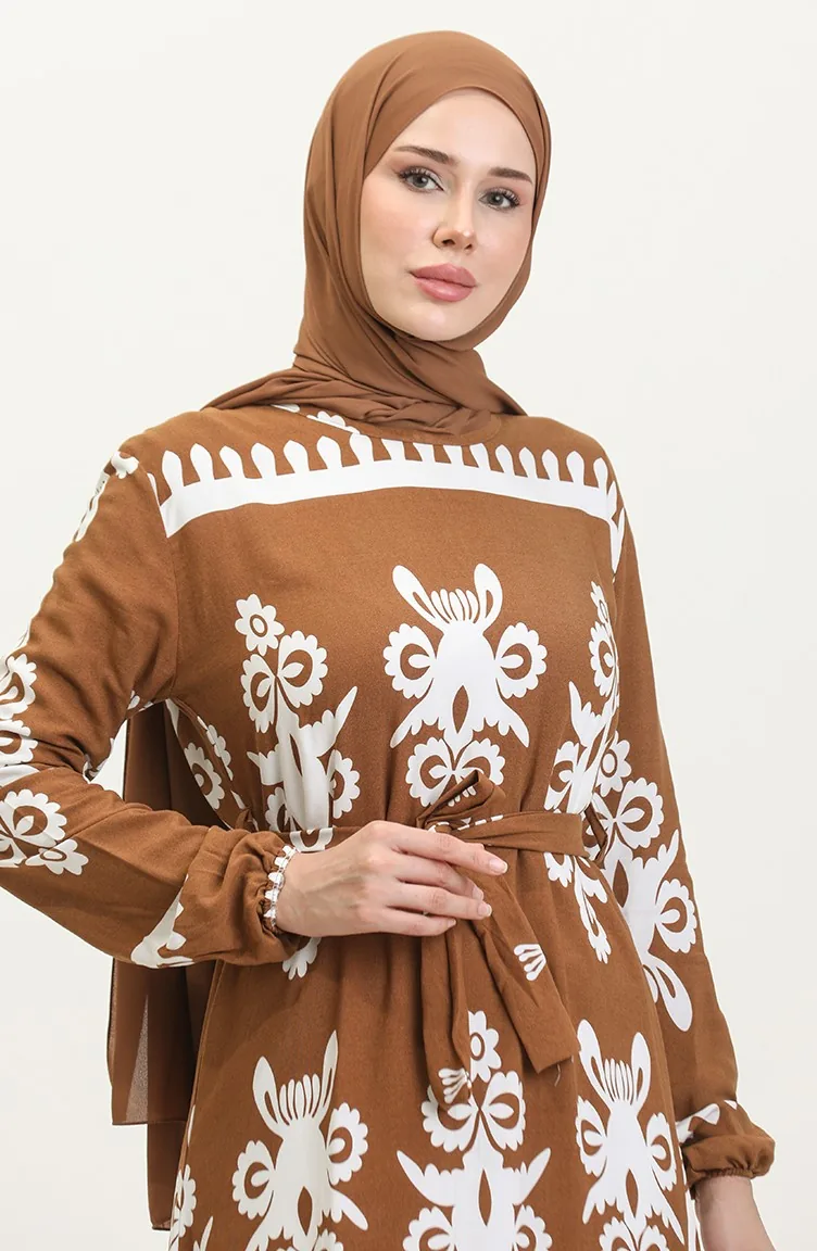Robe Viscose à Motifs 81872-03 Tan 81872-03