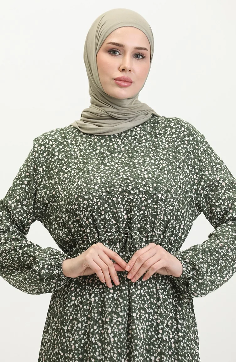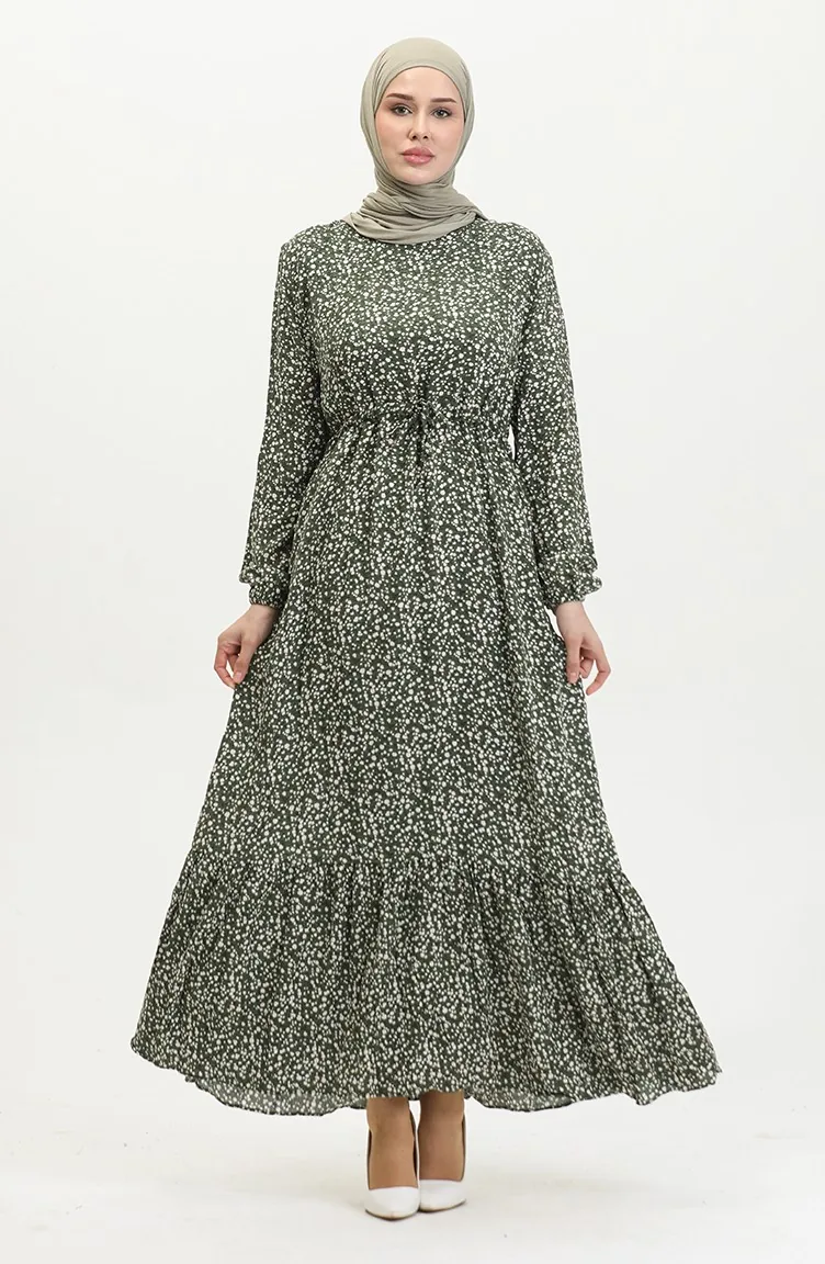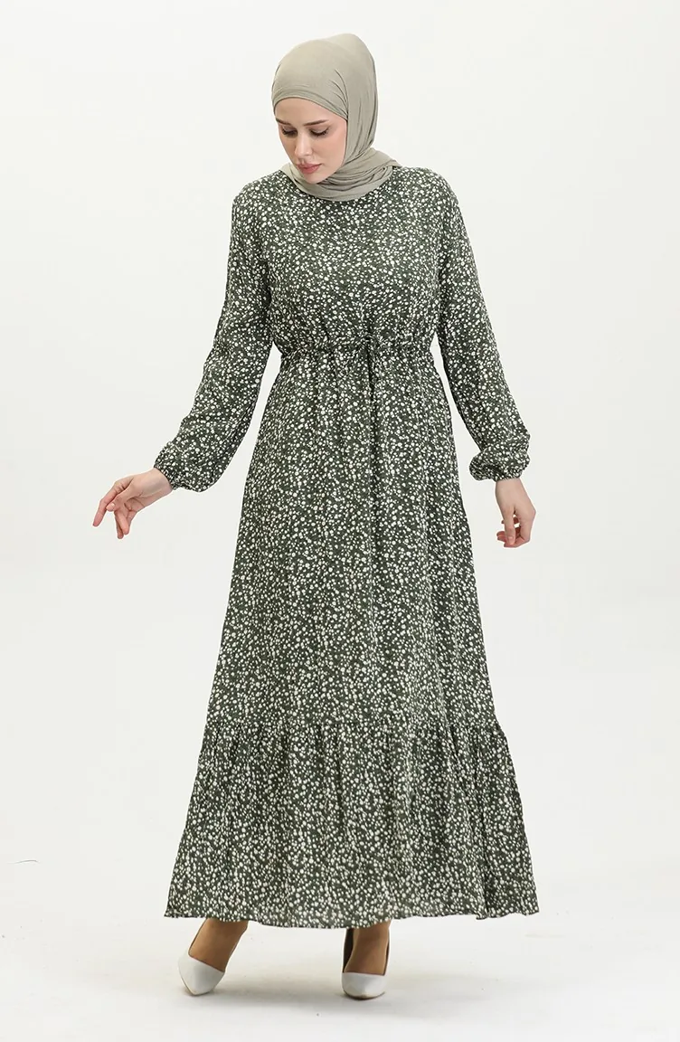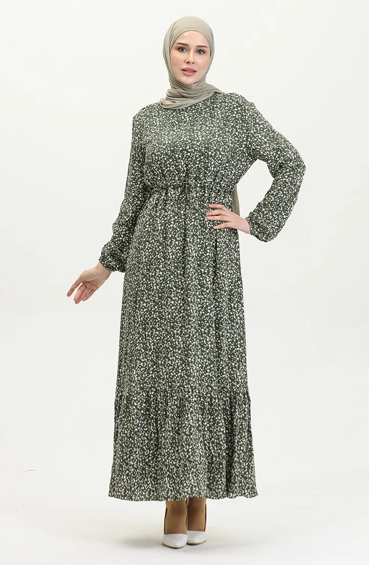 Robe Viscose A Motifs Fleuris 81859-01 Khaki 81859-01
