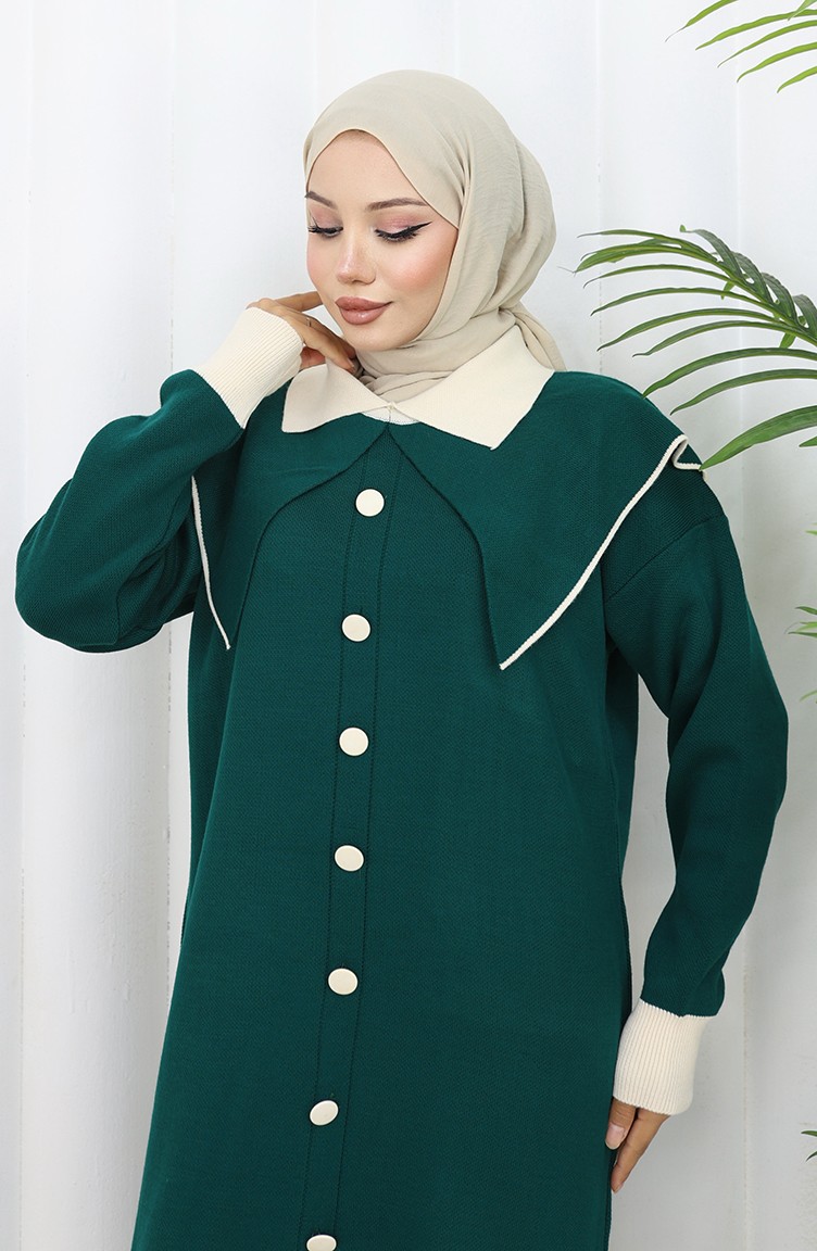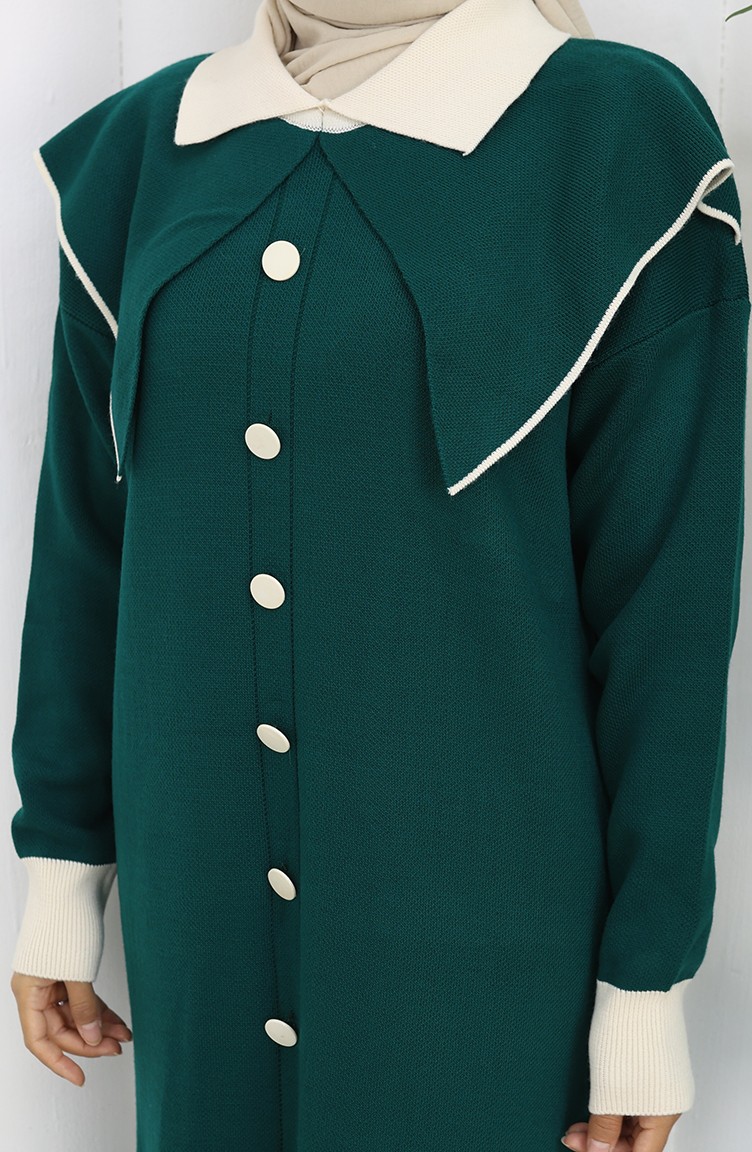 Robe En Maille à Col Boutonné Et Détails 0513-03 Pétrole 0513-03