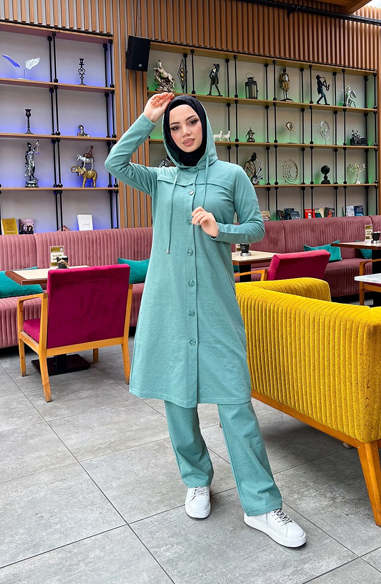 Survêtement A Capuche Boutonné 3072-09 Vert 3072-09