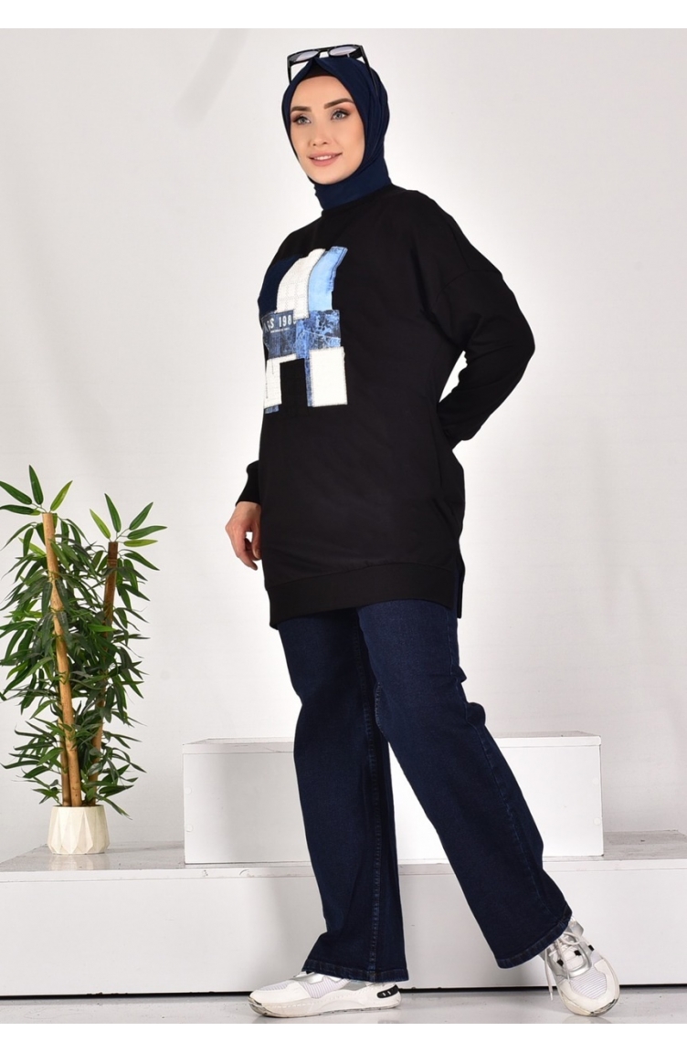 Sweat-shirt Pointe à Deux Fils Avec Garniture En Tissu 10582-01 Noir 10582-01