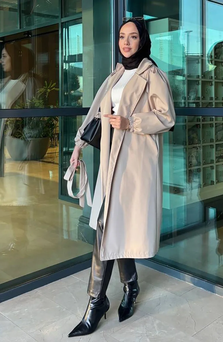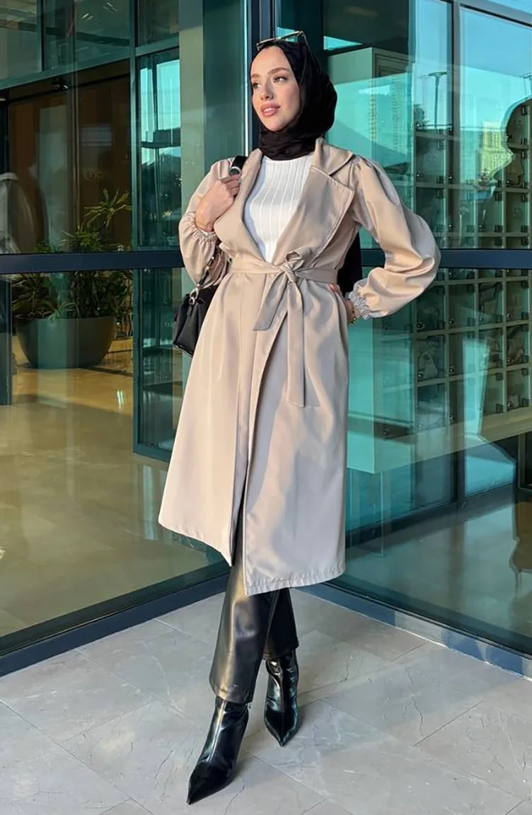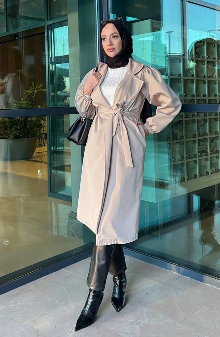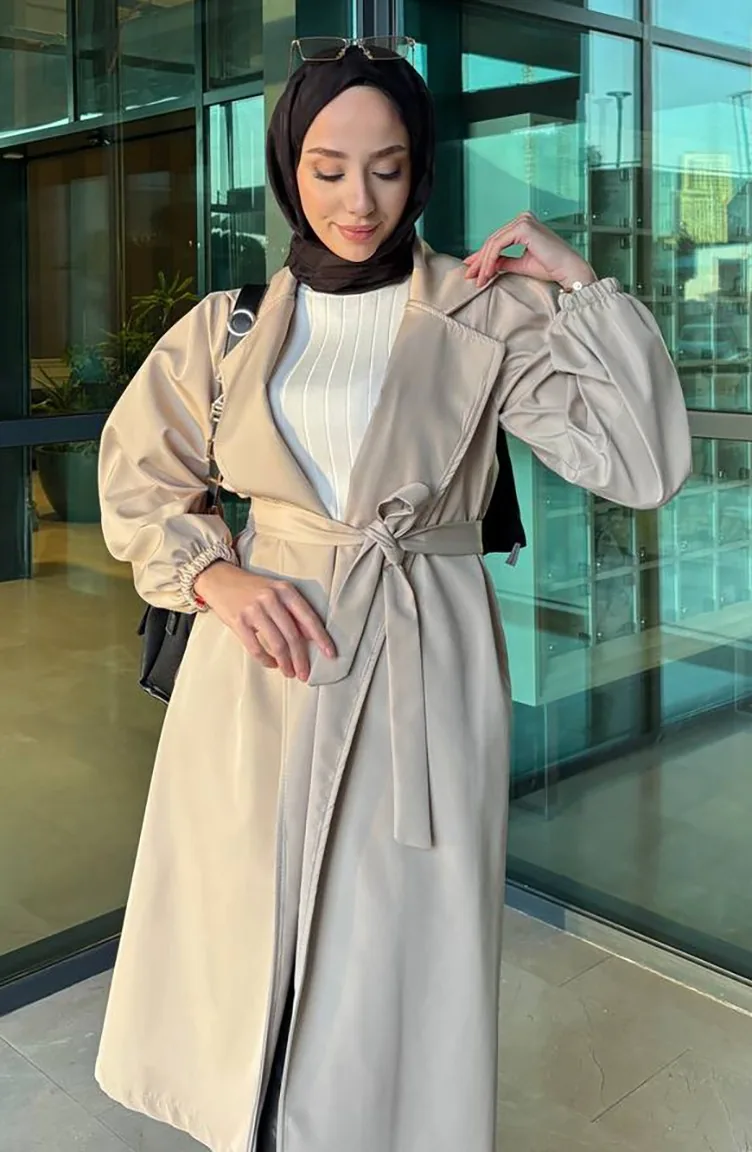 Couleur Pierre. Tissu Bondit. Simple. A Ceinture. Adapté pour les 4 saisons. Produit porté par le mannequin est sa propre taille.