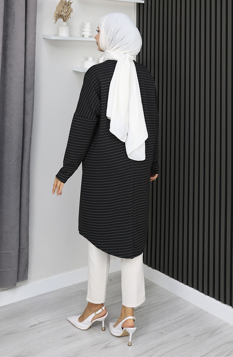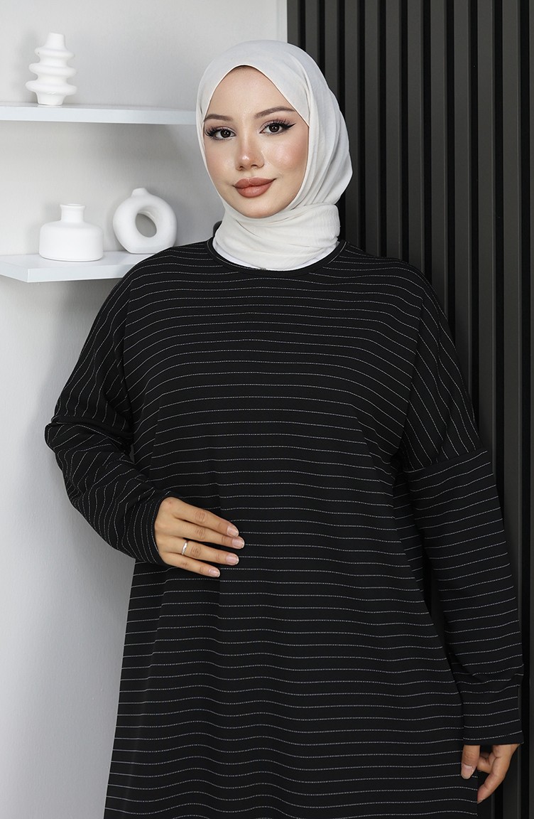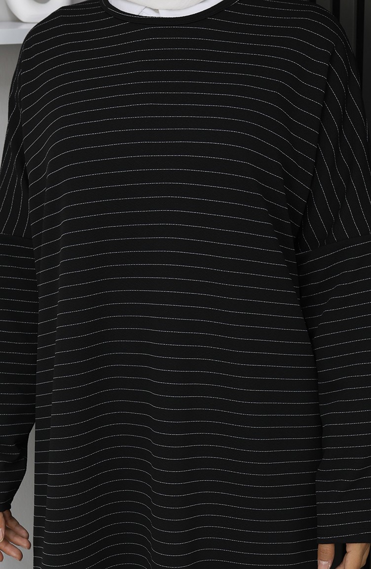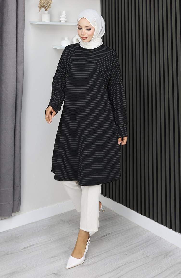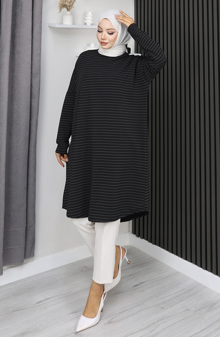 Tunique Rayée Basique De Saison Coupe Décontractée 8764-01 Noire 8764-01
