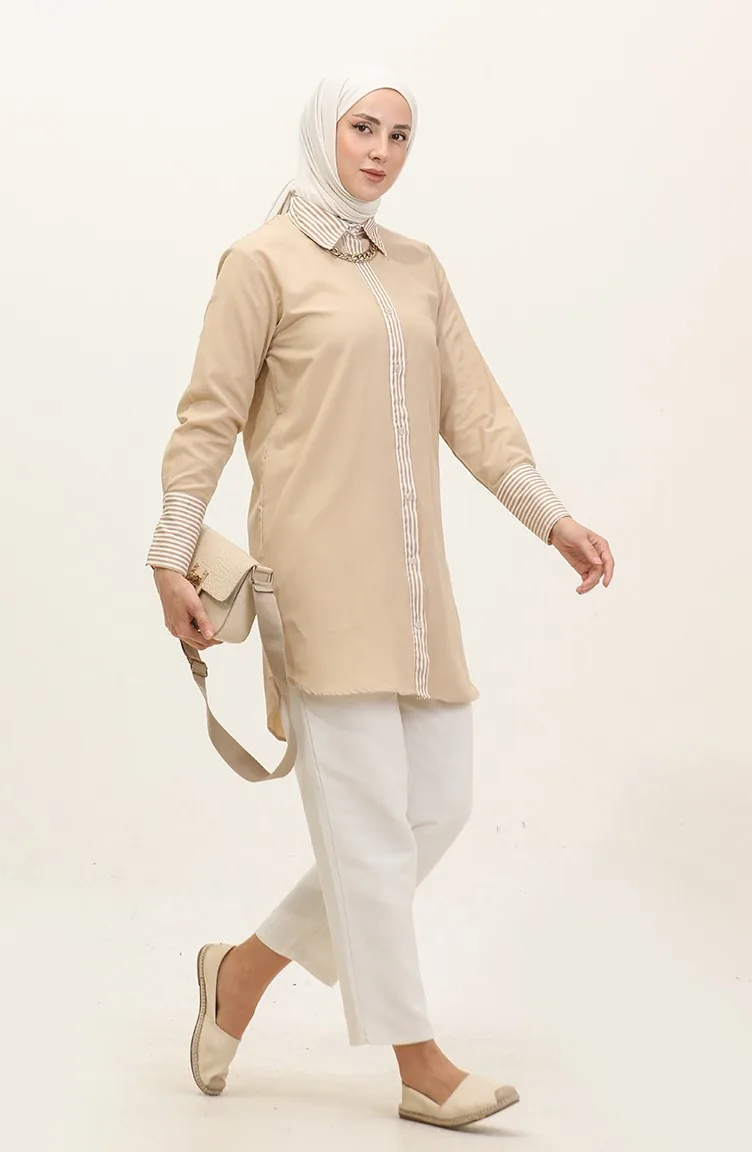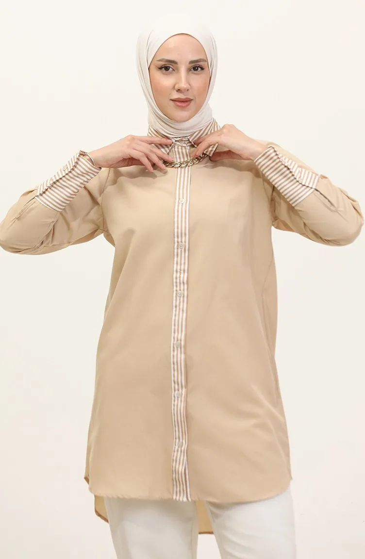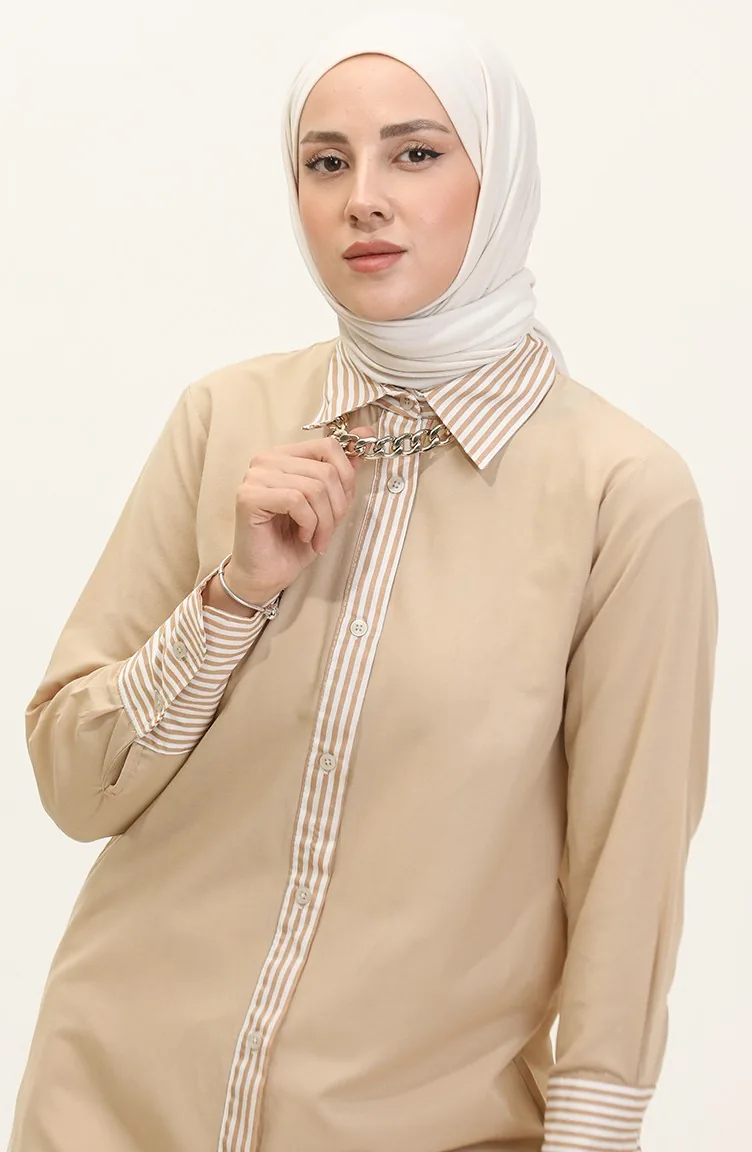 Tunique Garnie à Rayures 4823-03 Vison 4823-03