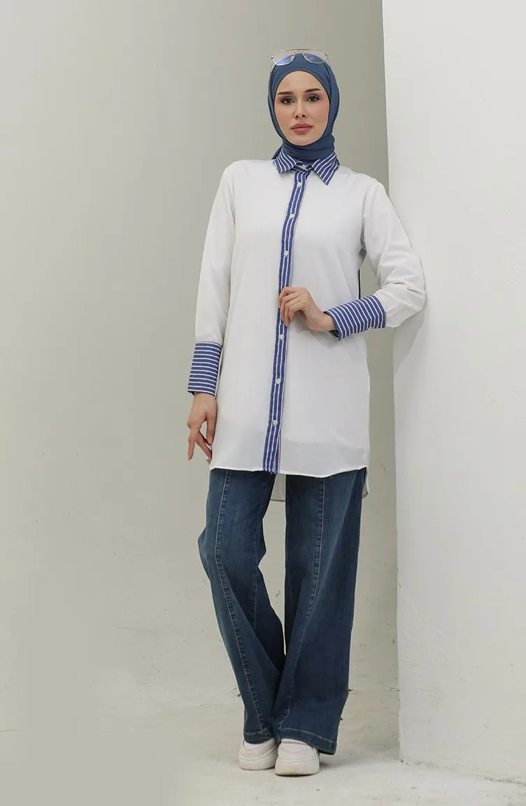 Tunique Garnie à Rayures 4823-06 Blanc 4823-06